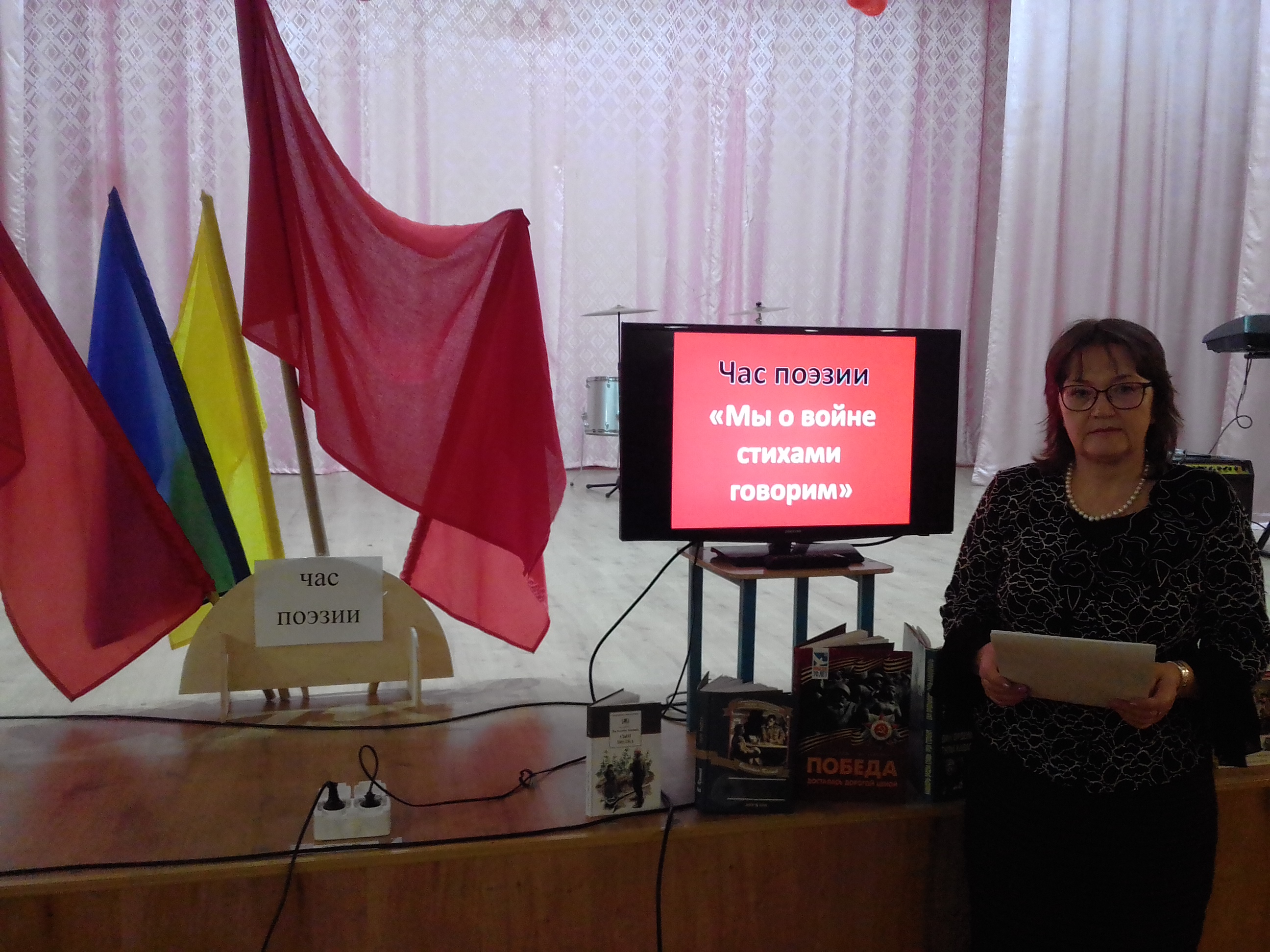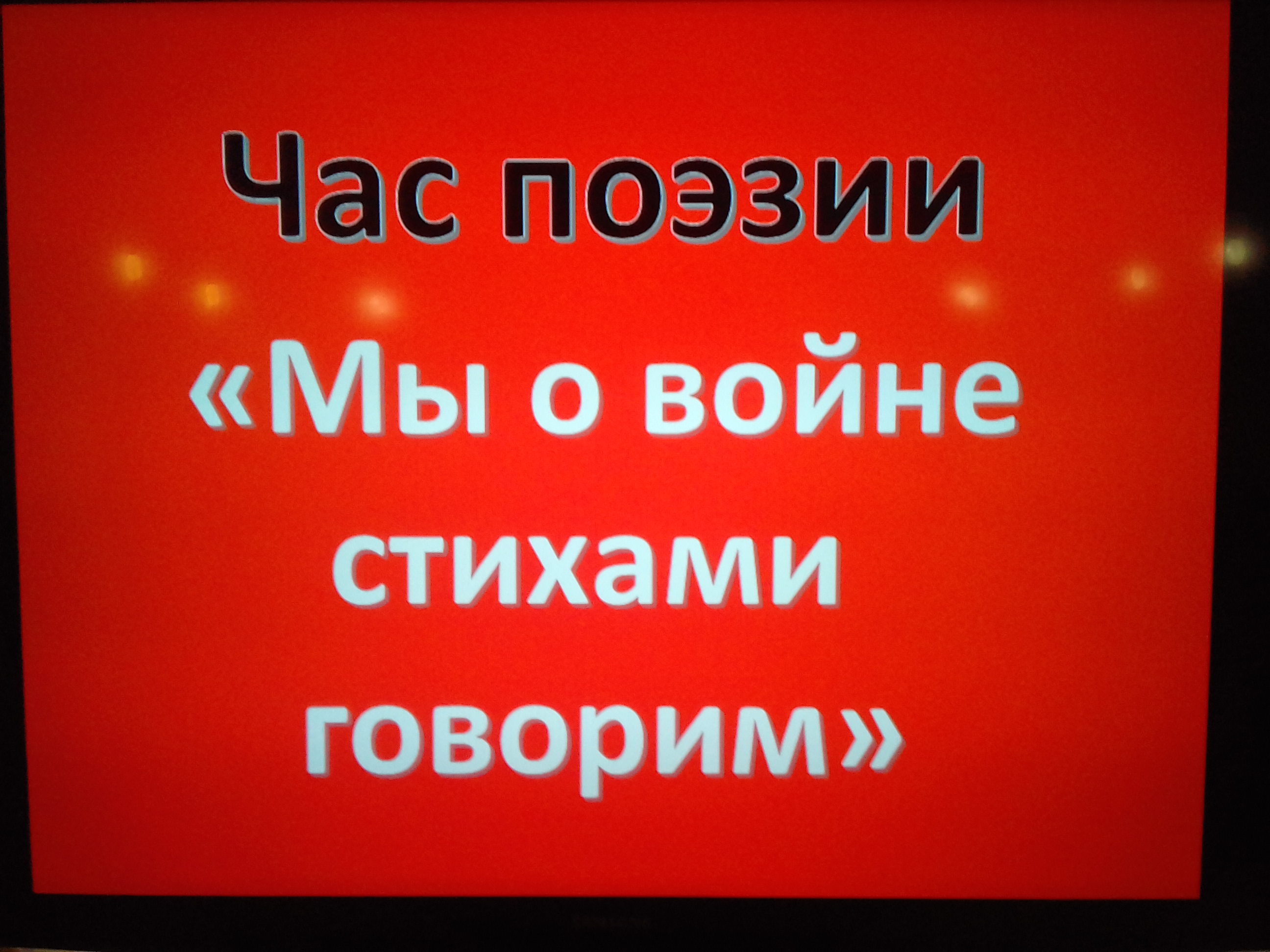 Сегодня мы собрались с Вами в этом зале, чтобы еще раз поговорить о ВОВ, о великой Победе и поговорим мы о ней на замечательном языке, на языке поэзии. Кажется, что война и стихи - это вещи несовместимые, но это не так. С самых первых дней войны и до самого победного мая 1945 года, и до наших дней поэты писали и пишут о войне. И это удивительные стихи – пронзительные, трагические и очень честные.