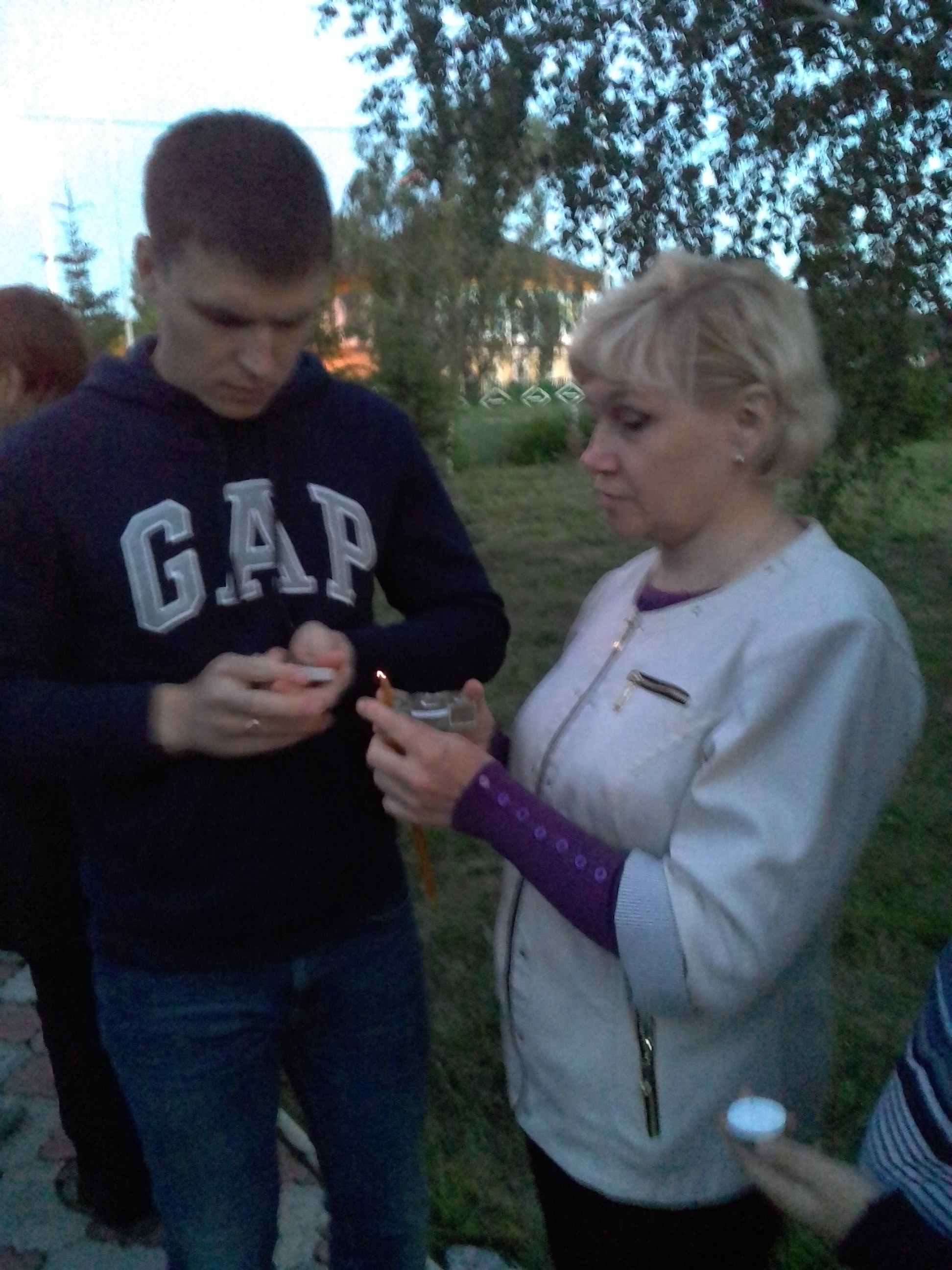 Минутой молчания собравшиеся почтили память всех погибших и умерших участников Великой Отечественной войны и зажгли свечи памяти, как символ того, что подвиг народа никогда не будет забыт.