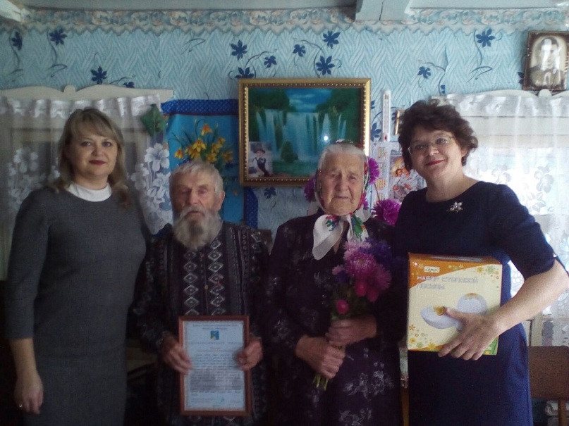 Николай Михайлович и Нина Яковлевна всю свою трудовую жизнь посвятили родному селу, колхозу. Супруги вырастили и воспитали четверых достойных детей. От имени Главы района Павла Лоханова юбиляров поздравила и вручила «Благодарственное письмо» за общий результат крепкой и счастливой семьи, за пример бережного и мудрого отношения друг к другу, за пример терпения, мужества и верности начальник отдела ЗАГС Исполнительного комитета МР Елена Халикова, а так же юбиляров поздравили и вручили памятный подарок секретарь Кирельского сельского поселения Светлана Андряшова и директор сельского дома культуры деревни Мордовские Каратаи Ирина Окунева.