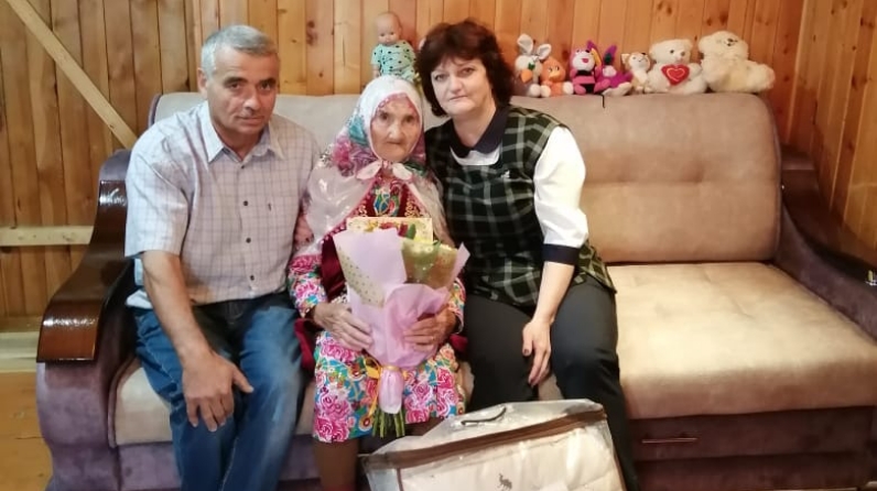 Разие Исмагиловне были вручены цветы, памятные подарки и поздравления от Президента РФ В.В. Путина.