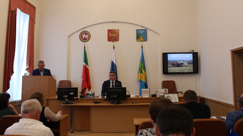 О проделанной работе за прошедшую неделю в сельскохозяйственных формированиях района доложил Валиев Ильфат Ильдарович – начальник управления сельского хозяйства и продовольствия. С информационным сообщением о ходе работ в сельскохозяйственных формированиях района (выплата заработной платы, ход уборки) выступил Гибатов Рафаэль Ринатович – заместитель директора ООО «Агрофирма «Камская», «Теньковская».