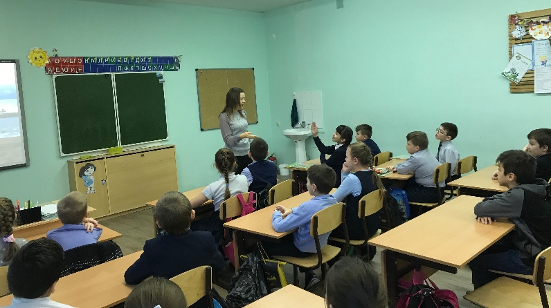 В рамках празднования 100-летия со дня образования ТАССР, в Камскоустьинской средней общеобразовательной школе, главный хранитель музея Туфана Миннуллина Гульчачак Гимадиева провела классный час «Урок мужества» для учащихся 3 А и Б классов.