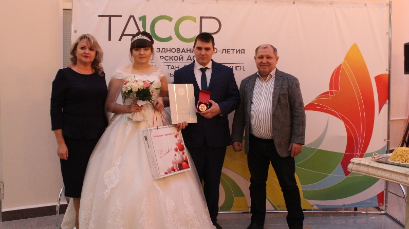 В Год 100-летия ТАССР республика учредила медаль к юбилею, которую вручают первым молодоженам в районах республики. Камско-Устьинская пара получила ее из рук руководителя Исполнительного комитета Загидуллина Рината Маратовича.