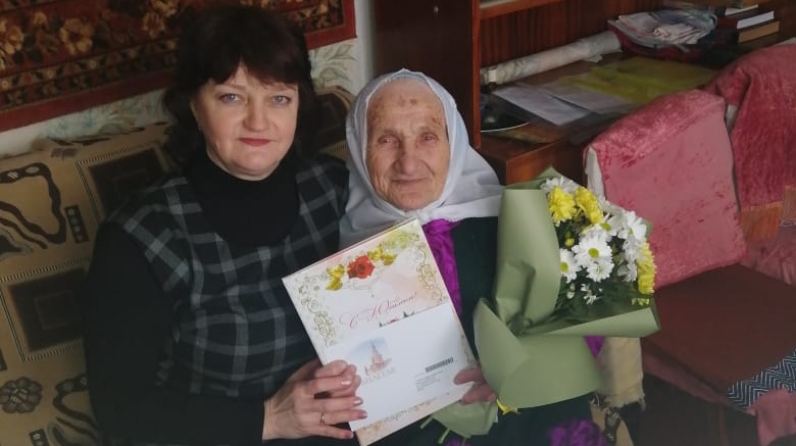 Хадие Идрисовне были вручены цветы, памятные подарки и поздравления от Главы района и Президента РФ В.В. Путина.