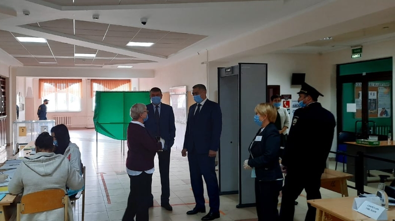 Во время визита они ознакомились с ходом проведения голосования. Посмотрели, как соблюдаются санитарно-эпидемиологические требования, как обеспечивается безопасность граждан.