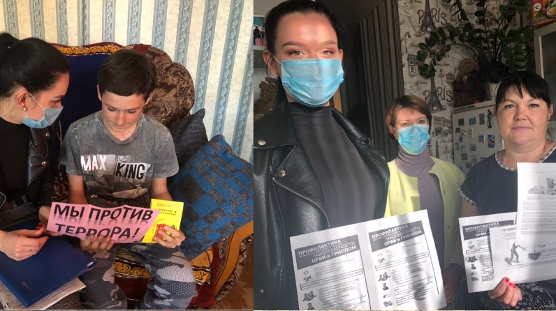 В рамках выезда получателям социальных услуг был проведен систематический инструктаж по действиям при обнаружении подозрительных взрывоопасных предметов с раздачей листовок «Экстремизм - угроза обществу!», вручены информационные памятки на тему «Последствия аборта для женщины» и актуальные в настоящее время буклеты, содержащие необходимую информацию по профилактике гриппа, ОРВИ, в том числе коронавирусной инфекции.