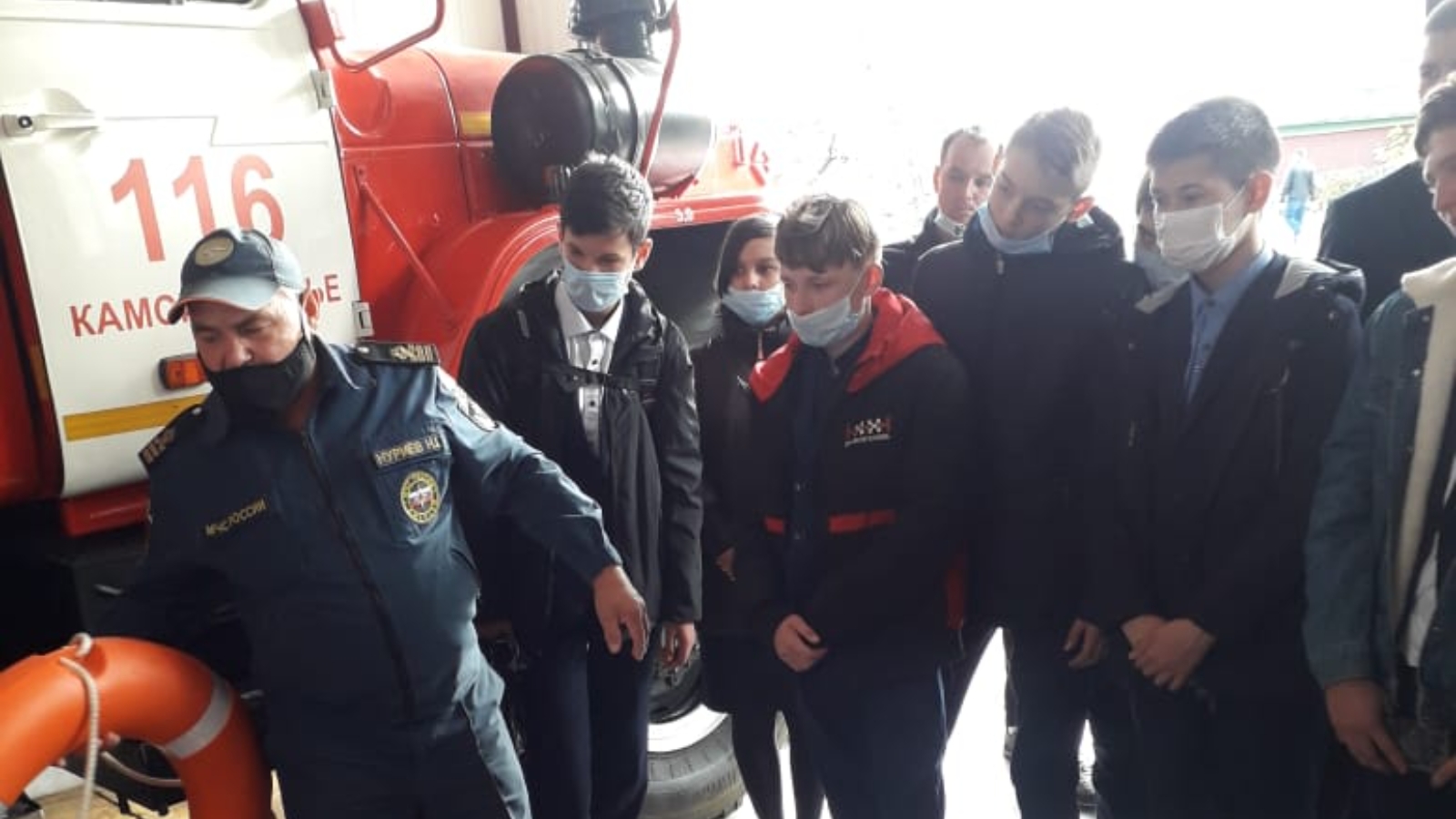 13 октября 2020 года в 13 часов на территории ПЧ-116 расположенной в п.г.т. Камское-Устье, госинспекторами Камско-Устьинского инспекторского участка Центр ГИМС ГУ МЧС России по РТ, Ниязом Нуриевым, Андреем Ерановым и техником Татьяной Агибаловой совместно с сотрудниками гарнизона проводился день открытых дверей в связи с проведением Месячника гражданской обороны с приглашением учащихся 8 классов и учителей МБОУ «Камско-Устьинская СОШ».
