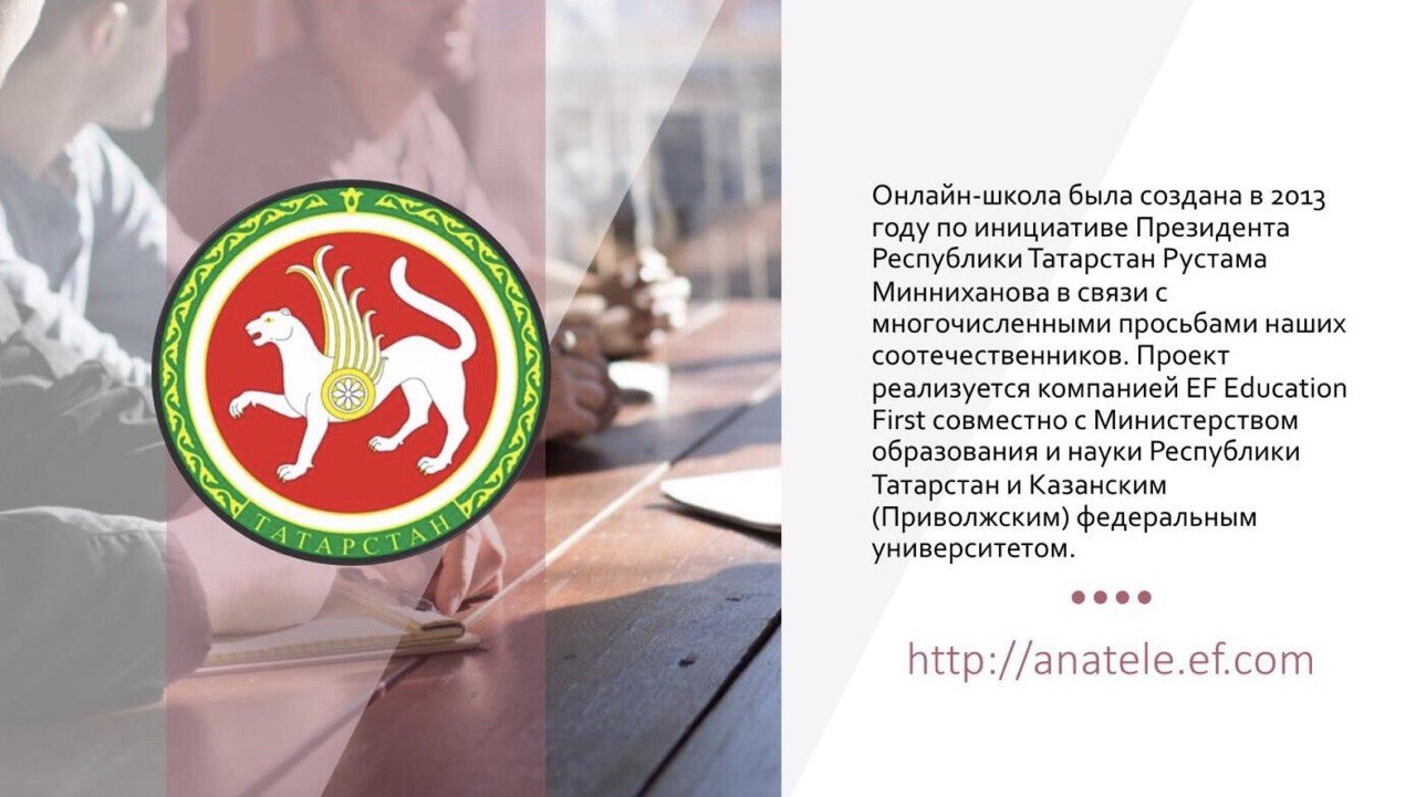 В соответствии с поручением Президента Республики Татарстан Р.Н. Минниханова с 2013 года функционирует уникальный проект дистанционного обучения татарскому языку «Ана теле», который предоставляет возможность повышения уровня практического владения татарским языком как средством речевой коммуникации. Проект «Ана теле» нацелен на обучение татарскому языку всех желающих, проживающих как в Республике Татарстан, так и за рубежом. Обучение бесплатно и доступно на трех языках (английский, татарский, русский).