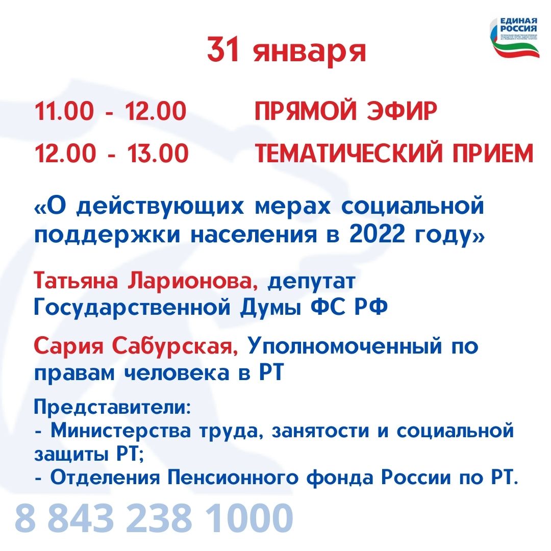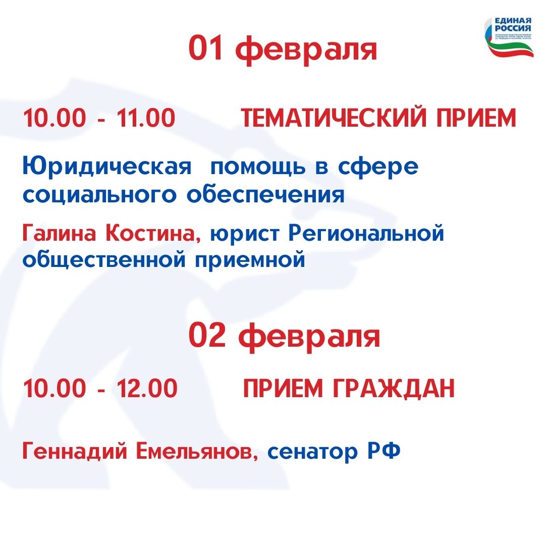 График проведения приема граждан сенаторами Российской Федерации и депутатами Государственной Думы Федерального Собрания Российской Федерации в Региональной общественной приемной и Местных общественных приемных местных отделений ТРО Партии в период региональной недели 31.01 – 04.02.2022 г.