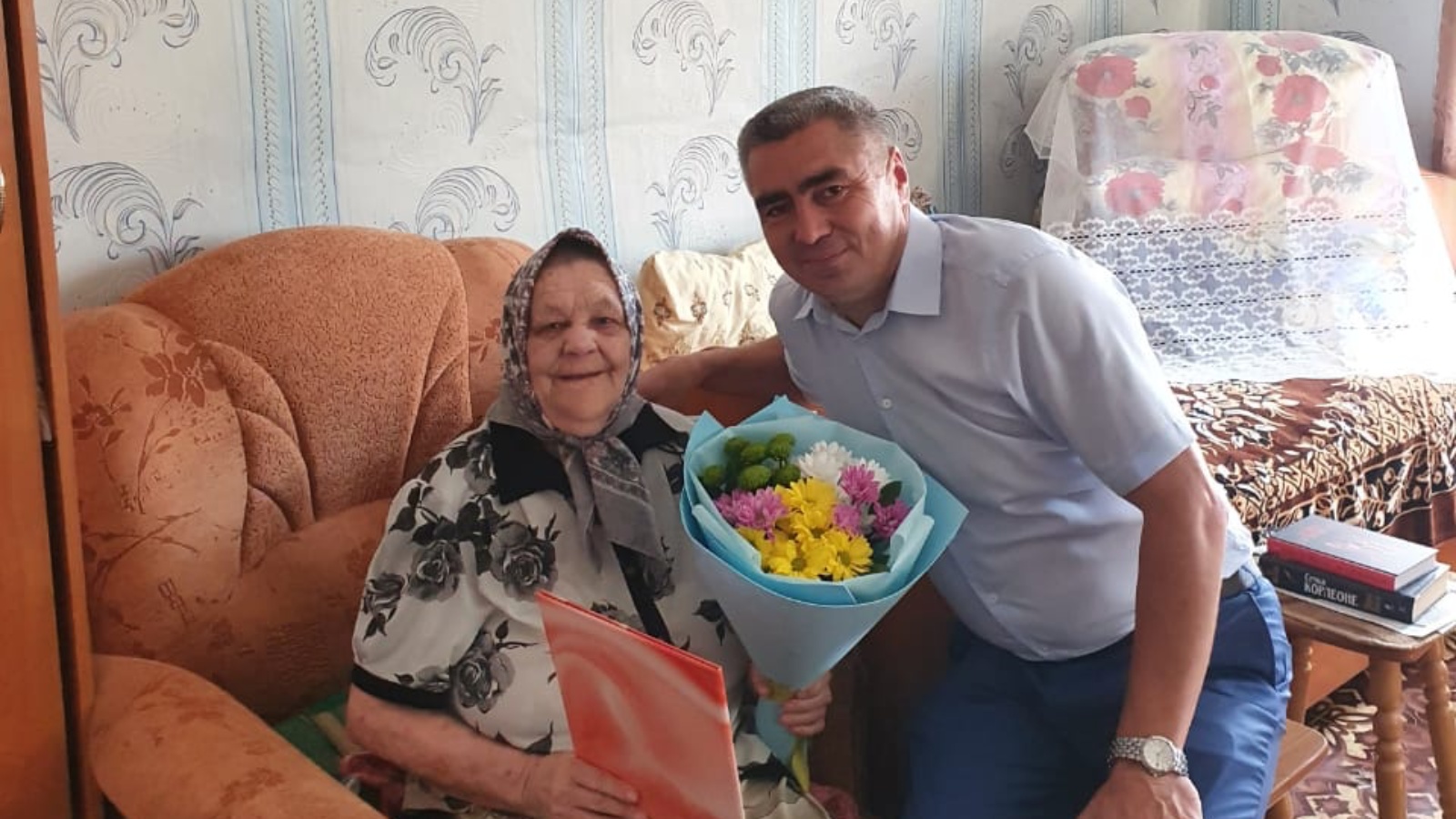 90-летний юбилей отмечает Синицына Нина Васильевна, поздравил Глава Камско-Устьинского муниципального района Вазыхов Наиль Альбертович.