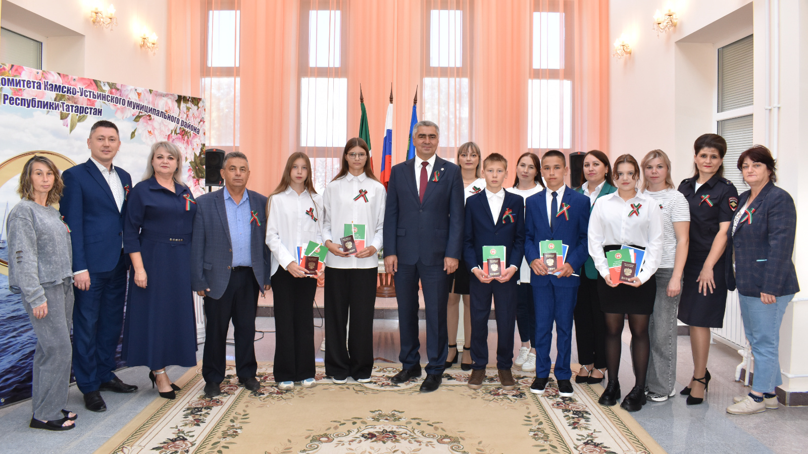 В преддверии Дня Республики Татарстан, состоялась церемония вручения паспортов 14-летним жителям Камско-Устьинского района. Главный документ гражданина Российской Федерации из рук Главы района Наиля Альбертовича Вазыхова в этот день получили 5 юных камскоустьинцев.