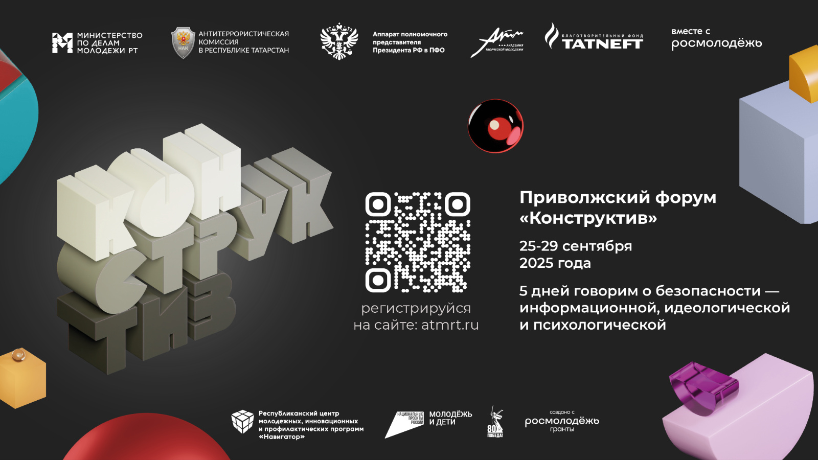 Стартовала регистрация на ключевое молодёжное событие в сфере безопасности и развития критического мышления – Приволжский форум «Конструктив» по профилактике радикализма, экстремизма и идеологии терроризма в молодежной среде, который пройдёт с 25 по 29 сентября 2025 года в Казани и объединит представителей 14 регионов Приволжского федерального округа.