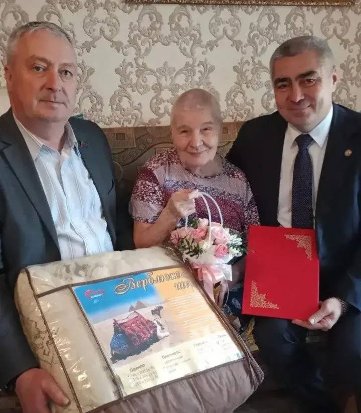 С юбилеем Чумагину Алевтину Михайловну поздравили Глава Камско-Устьинского района Наиль Альбертович Вазыхов и Глава пгт. Куйбышевский Затон Ефимов Николай Борисович.