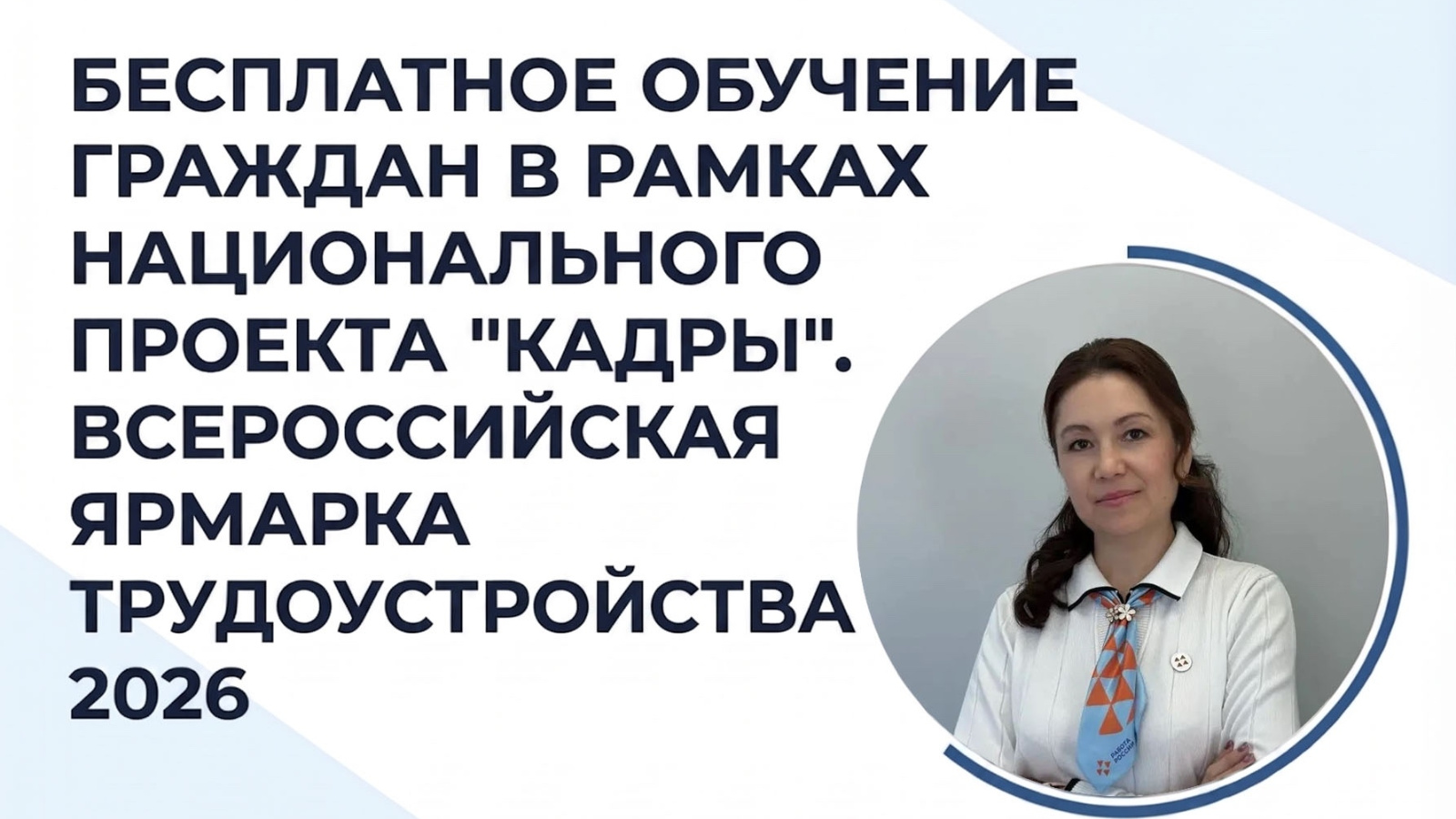 Начальник отдела ГКУ ЦЗН РТ по Камско-Устьинскому району Кадырова Наталья Геннадьевна рассказала о бесплатном обучении граждан в рамках национального проекта «Кадры» и Всероссийской ярмарке трудоустройства 2026.