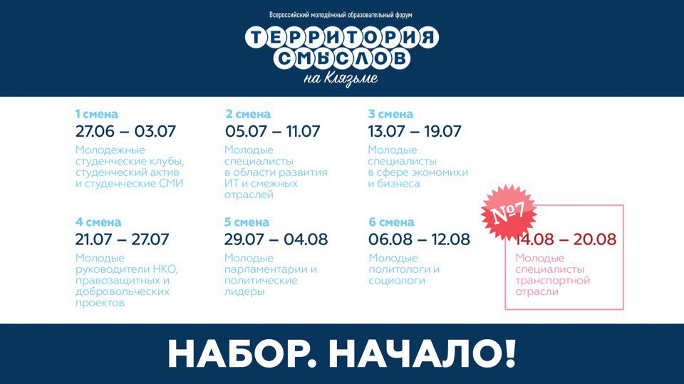 В апреле 2017 года стартовала заявочная кампания Всероссийского молодежного образовательного форума «Территория смыслов на Клязьме» (далее – Форум).