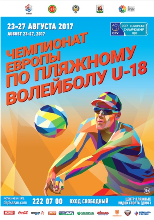 В период с 23 по 27 августа 2017 года в г.Казани состоится первенство Европы по пляжному волейболу среди юношей и девушек до 18 лет (далее – соревнования). Соревнования пройдут на 5 соревновательных кортах в Центре пляжных видов спорта, расположенном по правую сторону от входа во Дворец водных видов спорта (ул.Сибгата Хакима, 70). Участниками соревнований станут порядка 128 лучших пляжных волейболистов из 35 стран Старого света. За титул чемпиона Европы в своей возрастной категории будут бороться 32 мужские и 32 женские команды.