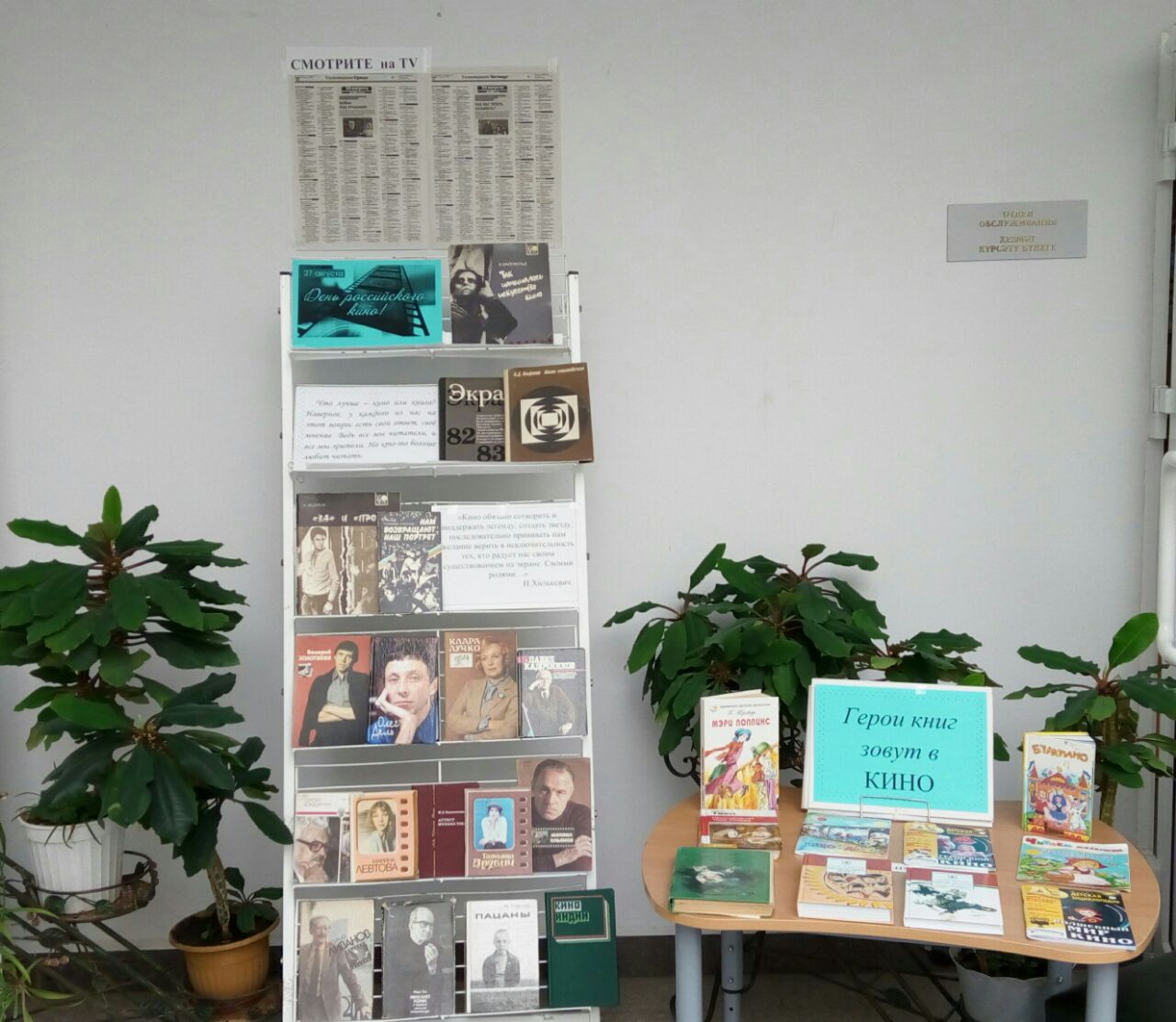 Ко дню российского кино в Центральной библиотеке в пгт Камское Устье для широкого круга читателей оформлены книжные выставки, на которых представлены книги о кино и книги, по которым сняты художественные фильмы. Читатели младшего возраста могут познакомиться с выставкой «Герои книг зовут в кино». А для старшего возраста оформлена выставка «Книга и кино» и информационный плакат «Смотри на ТV».