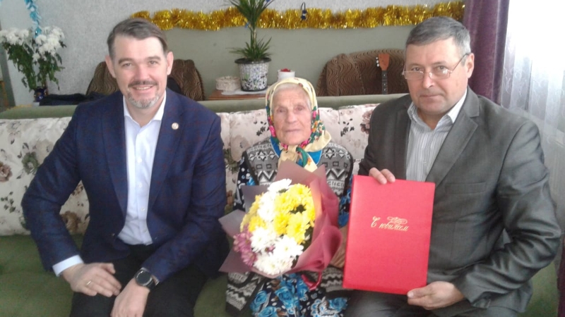 Анисья Петровнага чәчәкләр, истәлекле бүләкләр һәм Россия Федерациясе Президенты В. В. Путиннан котлаулар тапшырылды.