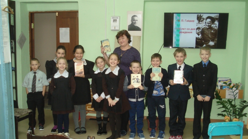 Бу танылган язучының биографиясе бик кечкенә генә тормыш – бары тик 37 ел гына булса да, Туган ил данын яклап батырлык һәм батырлык белән тулы. Аркадий Гайдар китаплары – намуслылык һәм кыюлык, яхшылык һәм кешелеклелек, батырлык һәм мәхәббәт турында. Алар арасында «җитди әкиятләр»: «кайнар таш» һәм «Киберчиш малай турында әкият», «Зәңгәр чынаяк», «Р,В,С,» һ.б. хикәяләре, «мәктәп», «Тимур һәм аның командасы», «Чук һәм Гек»повестьлары бар. Күп кенә әсәрләр Гайдар автобиографик. Чарада балалар Гайдарның биографиясе белән таныштылар, презентация белән таныштылар, бергәләп укыдылар һәм «кайнар таш»хикәясе буенча фикер алыштылар. Шулай ук «Кибальчиш һәм аның хәрби сере турында әкият " мультфильмын караганнан соң әңгәмә узды. Гайдар әсәрләренә бук трейлерлар күрсәтелде. Дәресләрдән соң күп кенә балалар,А,п, Гайдар иҗаты белән кызыксынып, китапханәдә аның китабын алдылар.