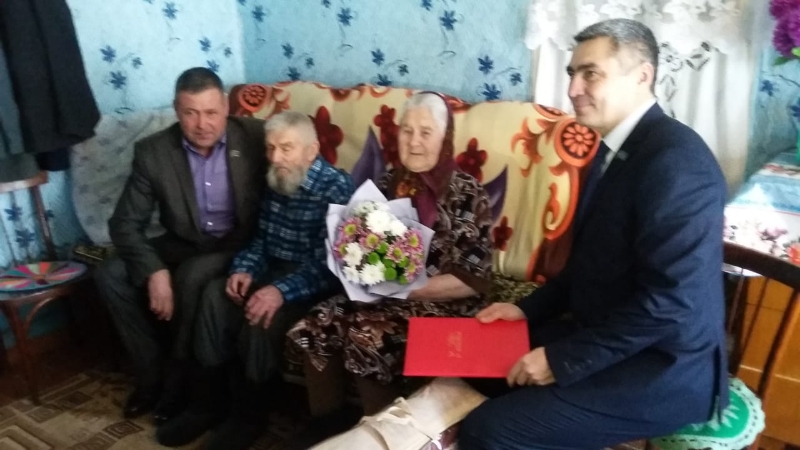 Нина Яковлевнага чәчәкләр, истәлекле бүләкләр һәм Россия Федерациясе Президенты В.В. Путиннан котлаулар тапшырылды.