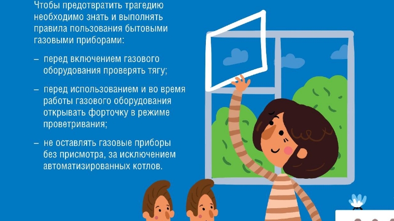 Газ җиһазларын кулланганда куркынычсызлык өчен яңа һава агымын мәҗбүри рәвештә тәэмин итәргә, әйтик, форточканы ачырга кирәк. Төзек булмаган газ приборларын кулланмаска, вентиляцион тишекләрне чит предметлар белән ябарга ярамый. Моны балачактан ук аңлатырга һәм өйрәтергә, балаларны ризык алдыннан кул юарга яки теш чистартырга өйрәтәбез. Бу гадәт сезне һәм сезнең якыннарыгызны исле газ белән очраклы агуланудан яклый һәм гомерен саклап кала.
