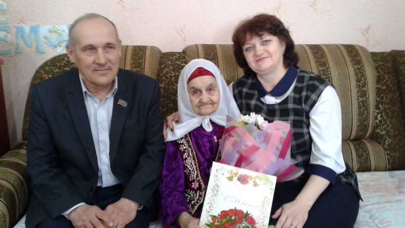 Мөнирә Галәв кызына чәчәкләр, истәлекле бүләкләр һәм Россия Федерациясе Президенты В.В.Путиннан котлаулар тапшырылды.