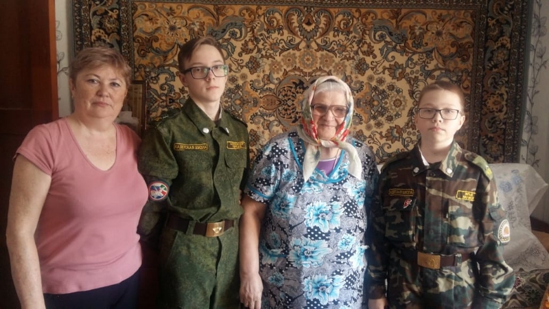 Социаль хезмәткәрләр һәм кадетлар Куйбышев Затон штп ветераннары, тыл хезмәтчәннәре Зуйкова Раиса Михаил кызы һәм Ходинович Лидия Семен кызы янына бардылар. Ветераннар кунакларга бик шат иде. Алар яшьләргә үзләренең бүләкләрен горурлык белән күрсәттеләр, хатирәләре белән уртаклаштылар, тормыштан тарихлар сөйләделәр, аларга күрсәткән игътибарлары өчен рәхмәт белдерделәр. Балалар аларга нык сәламәтлек, озын гомер теләделәр һәм якынлашып килүче Җиңү көне белән котладылар.