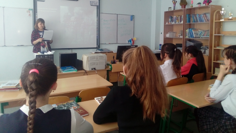 Кама Тамагы муниципаль районы үзәк китапханәсе хезмәткәрләре Кама Тамагы урта мәктәбенең 7 «А» сыйныф укучылары өчен батырлык дәресе үткәрделәр (сыйныф җитәкчесе А. Г. Ибәтуллина).