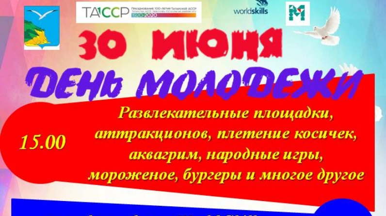 Сезне 2019 елның 30 июнендә булачак яшьләр көнен бәйрәм итүгә чакырабыз. (Кама Тамагы штп Т. Миңнуллин исем. парк).