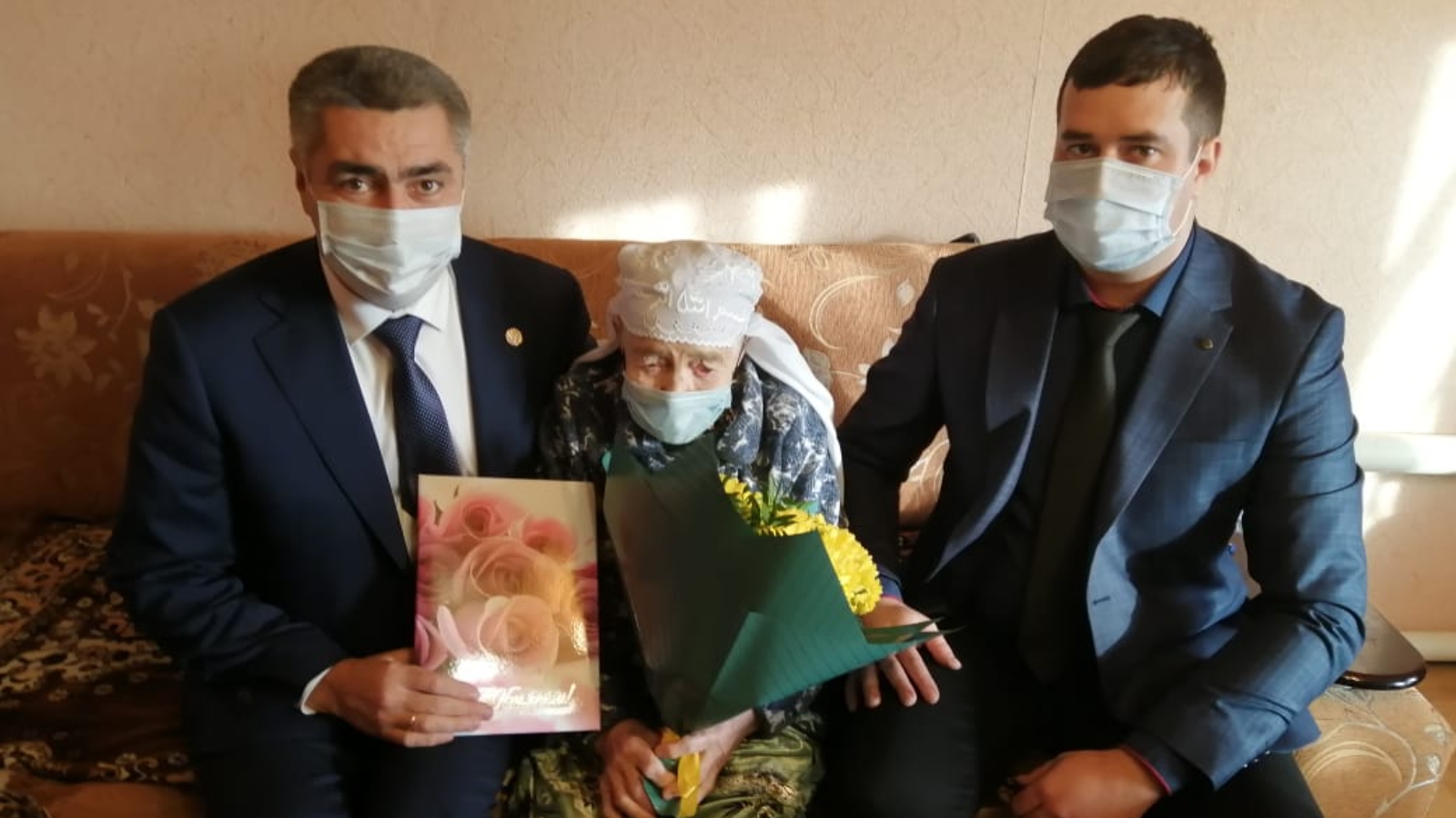 Мөслимә Заһир кызына чәчәкләр, истәлекле бүләкләр һәм РФ Президенты В.В.Путиннан котлаулар тапшырылды.