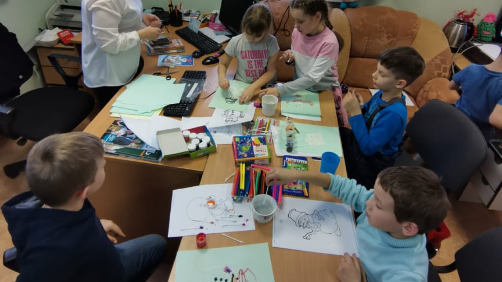 Аннан соң балалар кар бабайларын мамык таякчыклар белән рәсем ясау техникасы белән ясадылар. Һәр катнашучы үз рәсемендә фантазия һәм тырышлык күрсәтте.