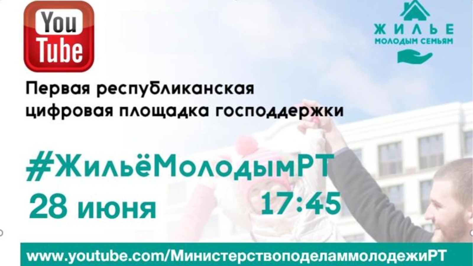 Яшьләр көне чаралары кысаларында Татарстан Республикасы Яшьләр эшләре буенча министрлыгының ютуб каналында 28 июнь 17.45 #ЖильёМолодымРТ (www.youtube.com/МинистерствоПоДеламРТ) туры эфиры узачак.