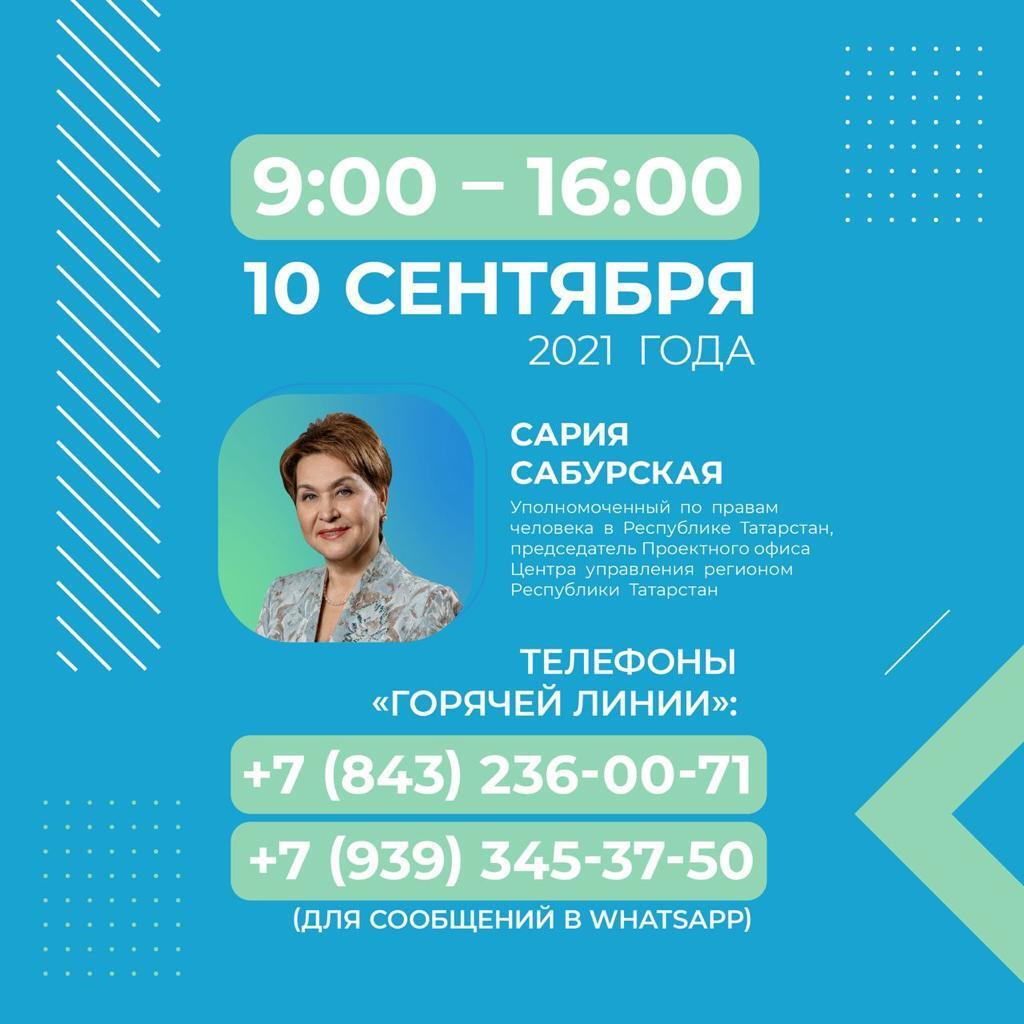 2021 елның 10 сентябрендә укучыларның хокукларын, ирекләрен һәм законлы мәнфәгатьләрен үтәү мәсьәләләре буенча телефон «кайнар линия» була