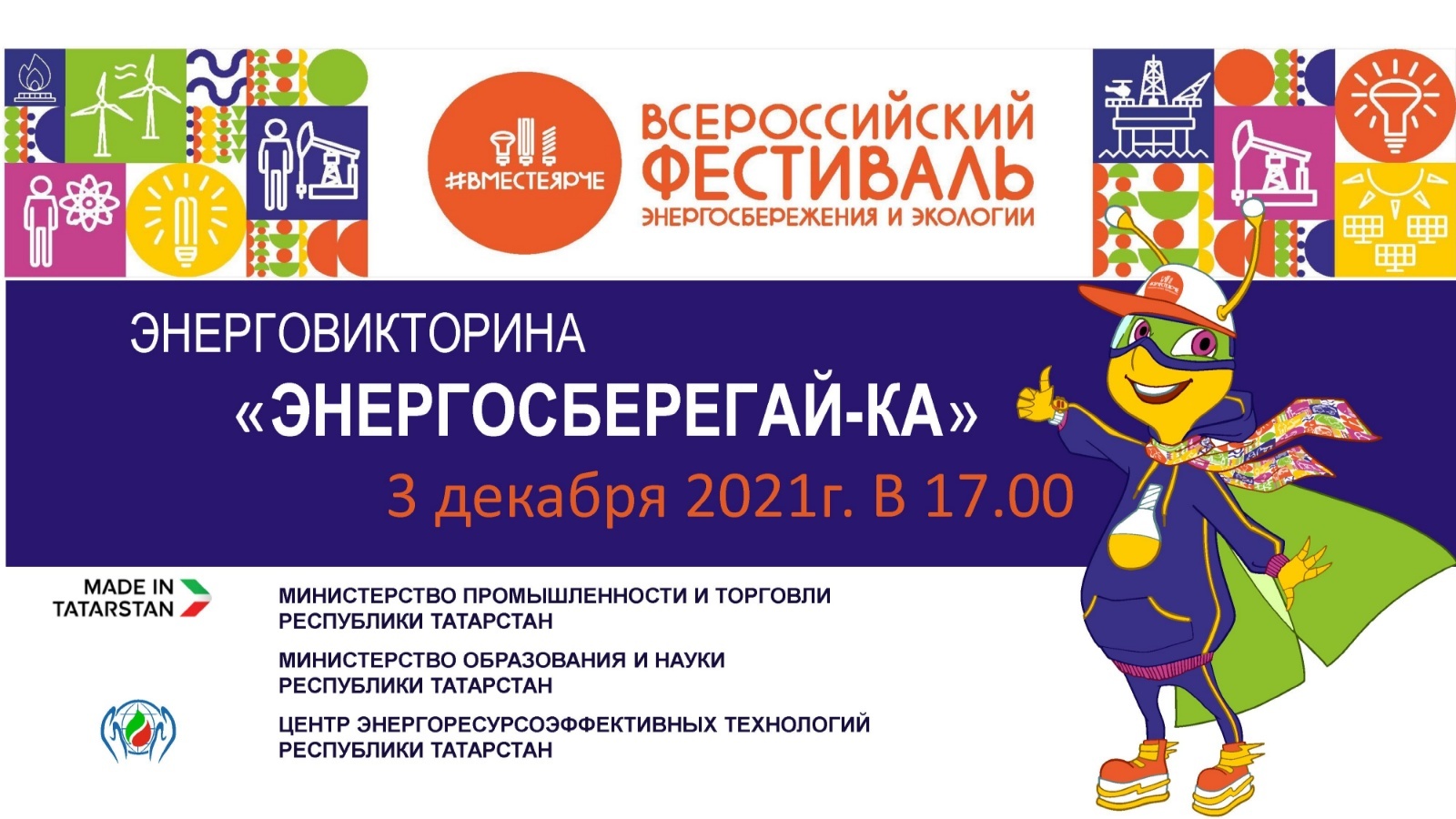 Энерговикторина 2021 елның 3 декабрендә 17.00 сәгатьтә 5-7 класс укучылары арасында онлайн форматында түбәндәге электрон мәйданчыкта узачак: https://play.myquiz.ru/p/251168.