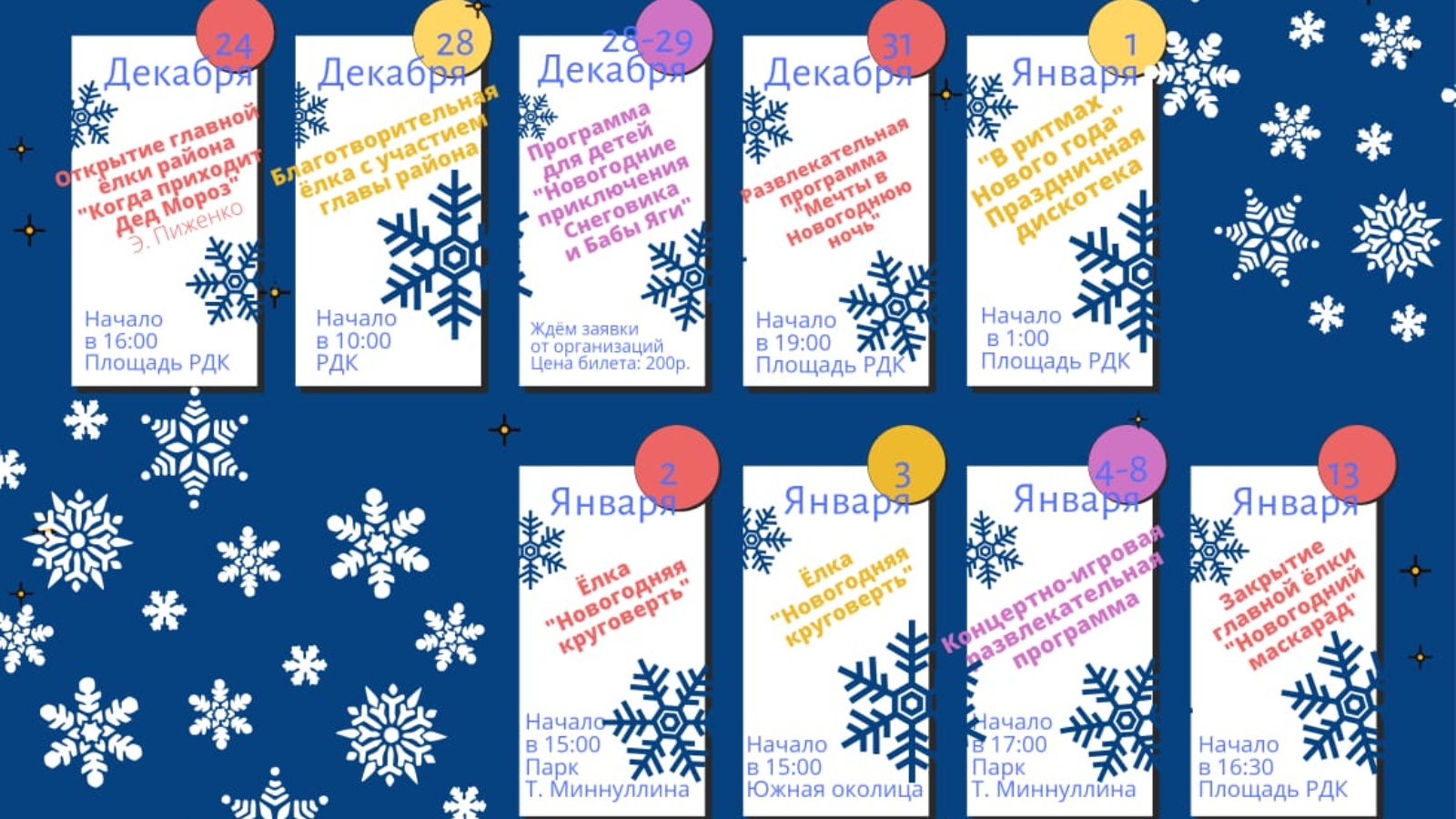 24.12.2021 16.00 - Районның төп чыршысын ачу «Кыш бабай килә» Мәдәният йорты мәйданы