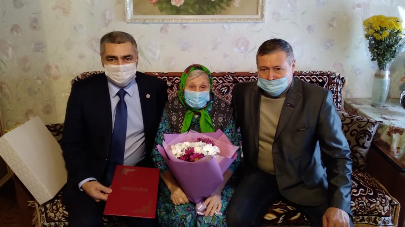 Пушканова Клавдия Ивановна үзенең 90 яшьлек юбилеен билгеләп үтә, Мордовский Каратай авылында яшәүче. Тәбрикләделәр: Кама Тамагы муниципаль районы башлыгы Вазыхов Наил Альберт улы һәм Кирель авыл җирлеге башлыгы Зиннәтуллин Фәнис Ярхәммәт улы.