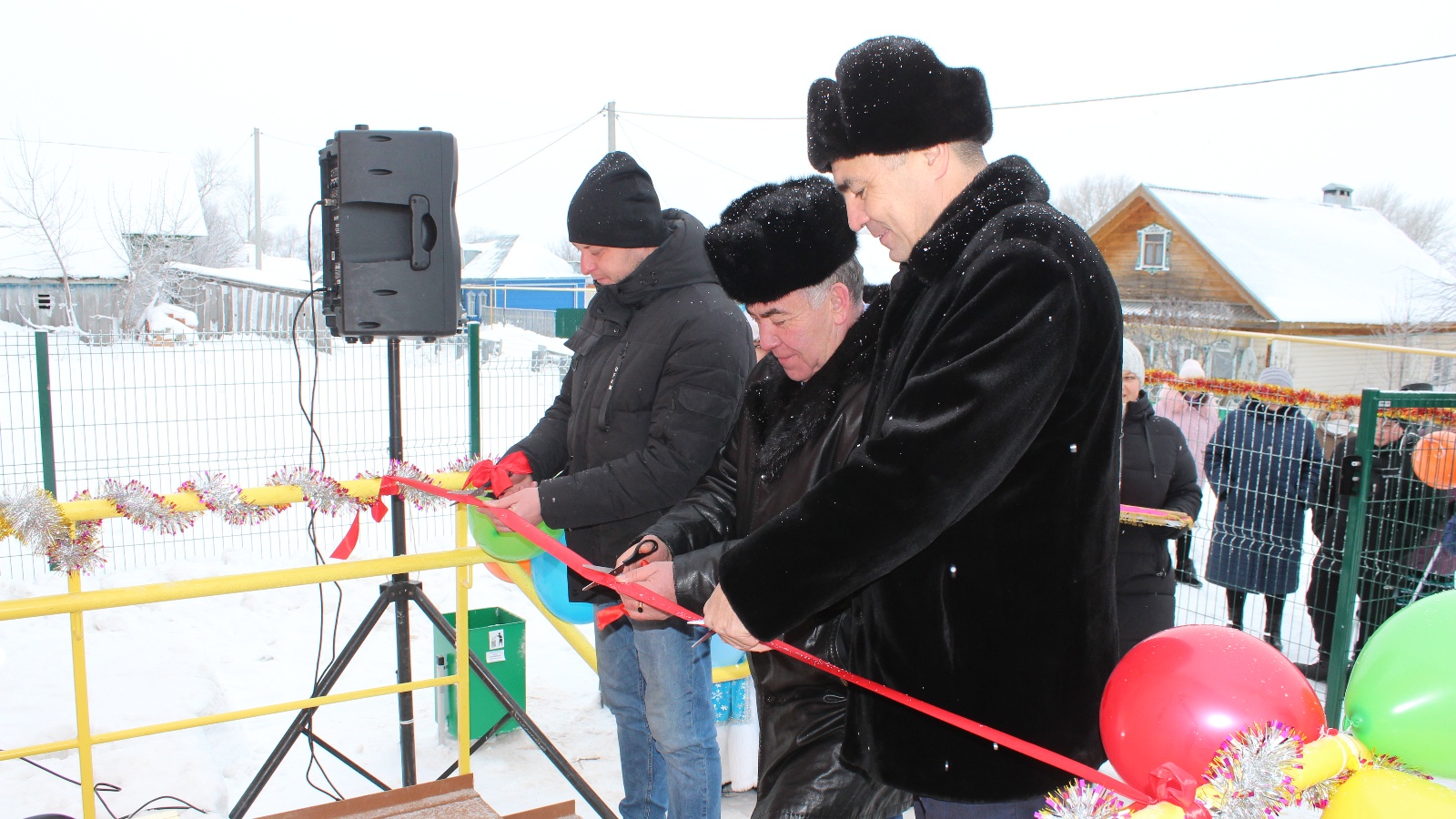 Аннары Наил Альбертович, Ильяс Илдус улы һәм Евгений Юрьевич тантаналы төстә кызыл тасманы кистеләр, һәм чарада катнашучылар, бинага карау өчен, бинага үттеләр.