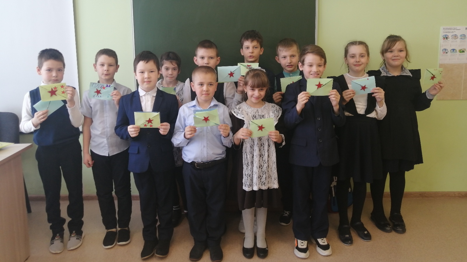 Ватанны саклаучылар көне алдыннан Рудник урта мәктәбенең 2 һәм 3 сыйныф укучылары өчен Район балалар китапханәсе «МастерОк» клубы җитәкчесе Гумирова Лилия «Әти өчен открытка» дип исемләнгән мастер – класс үткәрде. Открытка ясау өчен балалар клей, төсле кәгазь, глитер фоамиранын, ике яклы скотч, декоратив скотч, кайчы кулландылар.