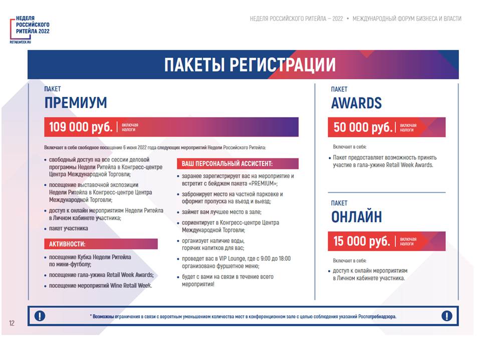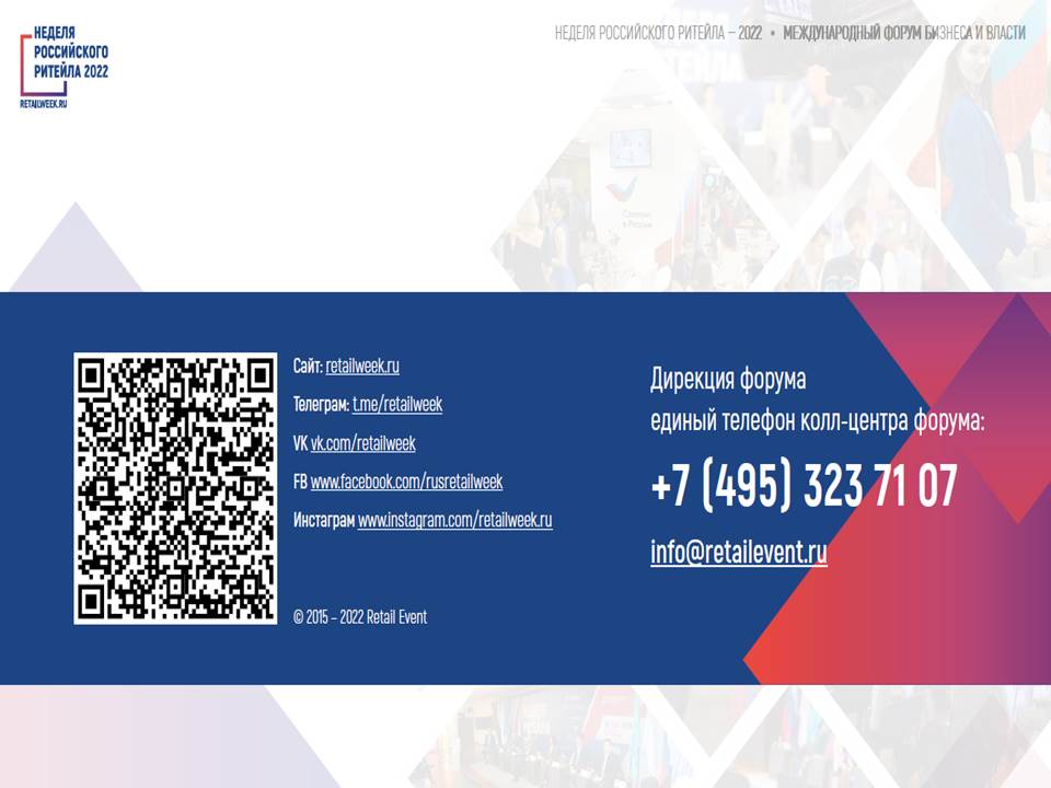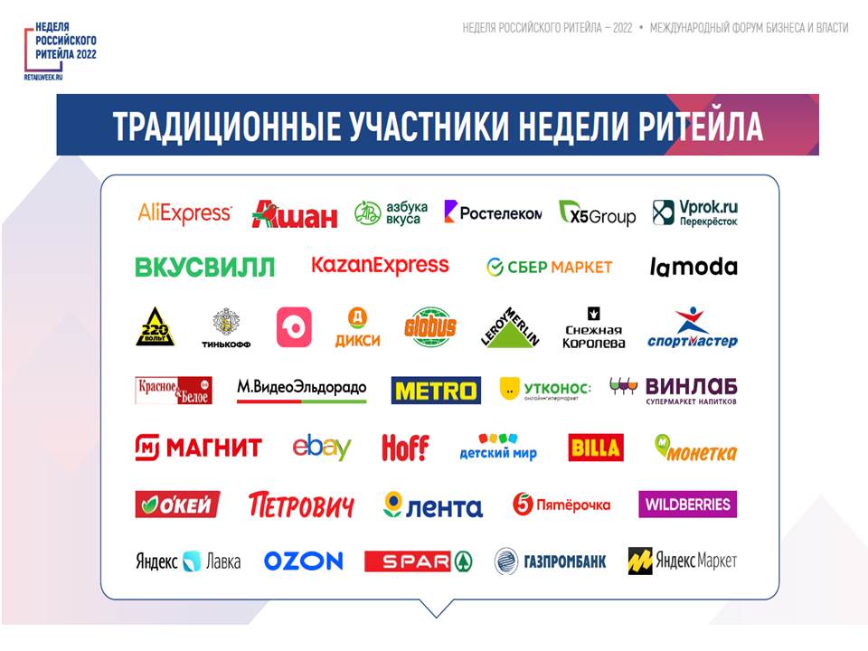 2022 елның 6-9 июнендә Мәскәүдә, Халыкара сәүдә үзәгендә «Россия ритейлы атнасы»VIII халыкара бизнес һәм хакимият форумы уздырыла. Чараның якынча программасы рәсми сайтта урнаштырылган https://retailweek.ru/.