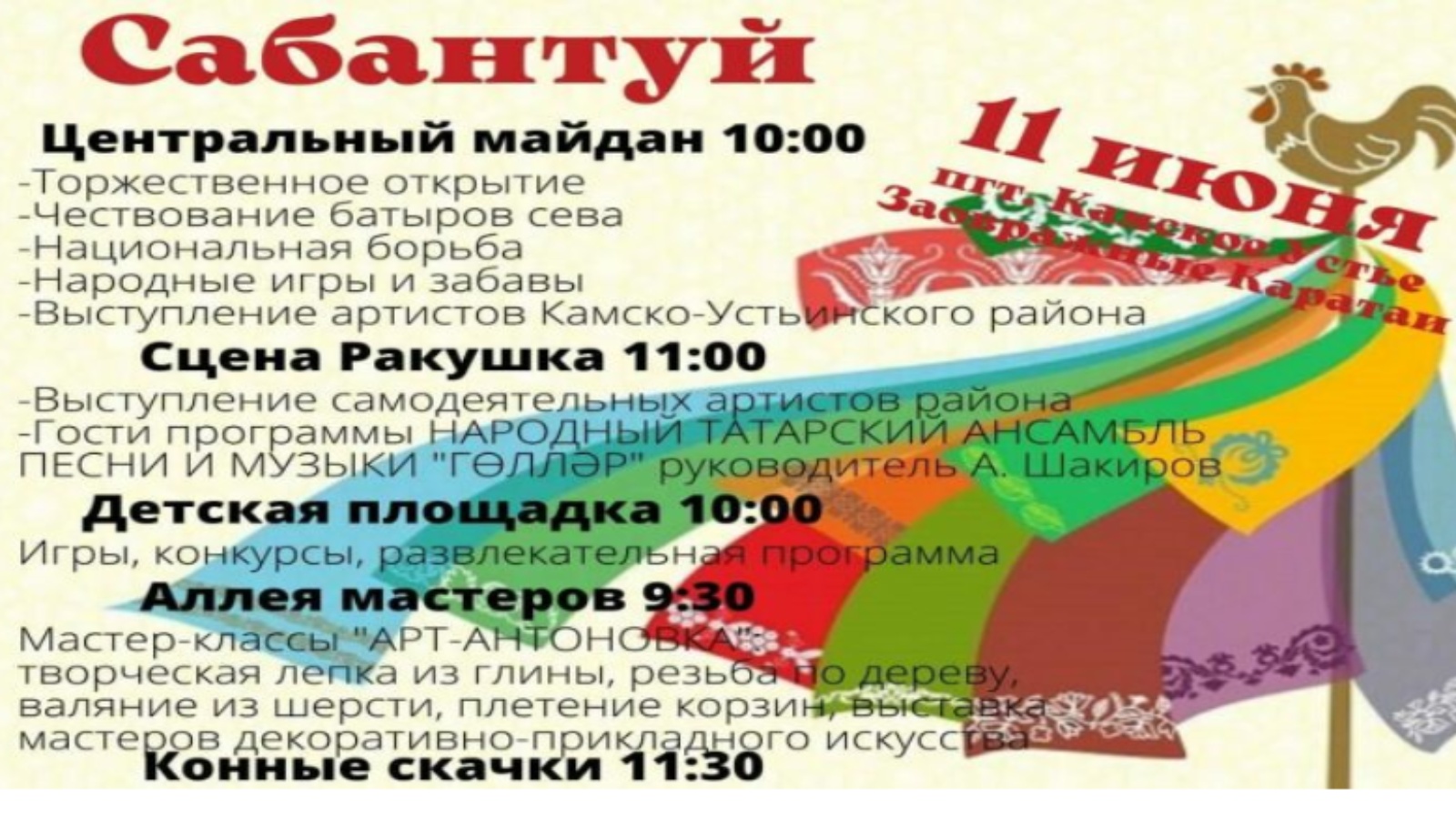 11 июнь көнне Ш.т. п. Кама Тамагы муниципаль районы, ул Заражлы Каратайдагы мәйданда узачак.