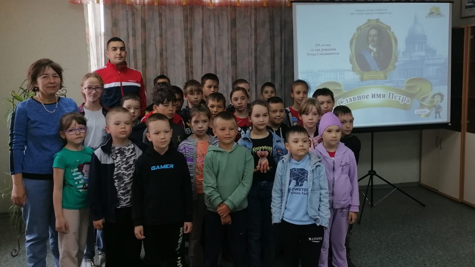 Петр I тууына 350 ел тулу уңаеннан Район балалар китапханәсе хезмәткәрләре кече яшьтәге мәктәп укучылары өчен «Петр I»дип исемләнгән тарихи китап көне үткәрделәр.