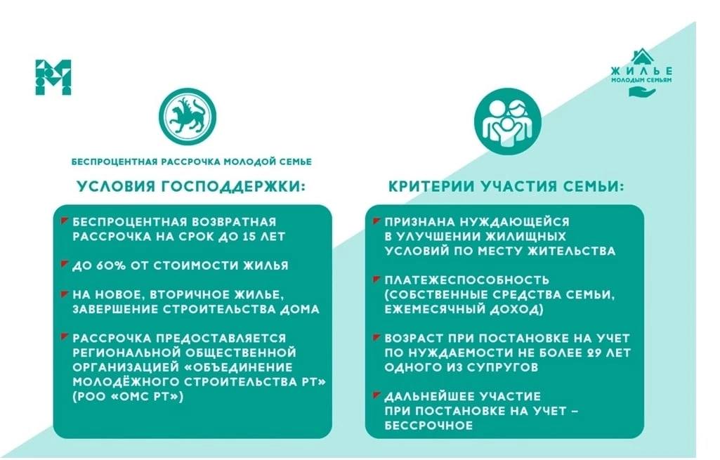 Тулырак мәгълүмат белән рәсми сайтта таныша аласыз https://minmol.tatarstan.ru/zhile-molodim-rt.htm.