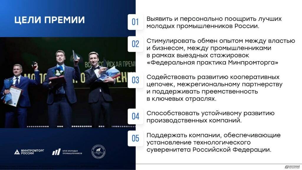 Россия Федерациясе Сәнәгать һәм сәүдә министрлыгының оештыру һәм мәгълүмати ярдәме белән «яшь сәнәгатьчеләр клубы» төбәкара берлеге тарафыннан 2022 елның декабреннән 2023 елның мартына кадәр Россия Федерациясе субъектларында урнашкан нефть чыгару һәм эшкәртү сәнәгате предприятиеләренең топ-менеджерлары, оештыручылары һәм милекчеләре өчен «Елның яшь сәнәгате - 2022» премиясе уздырыла.