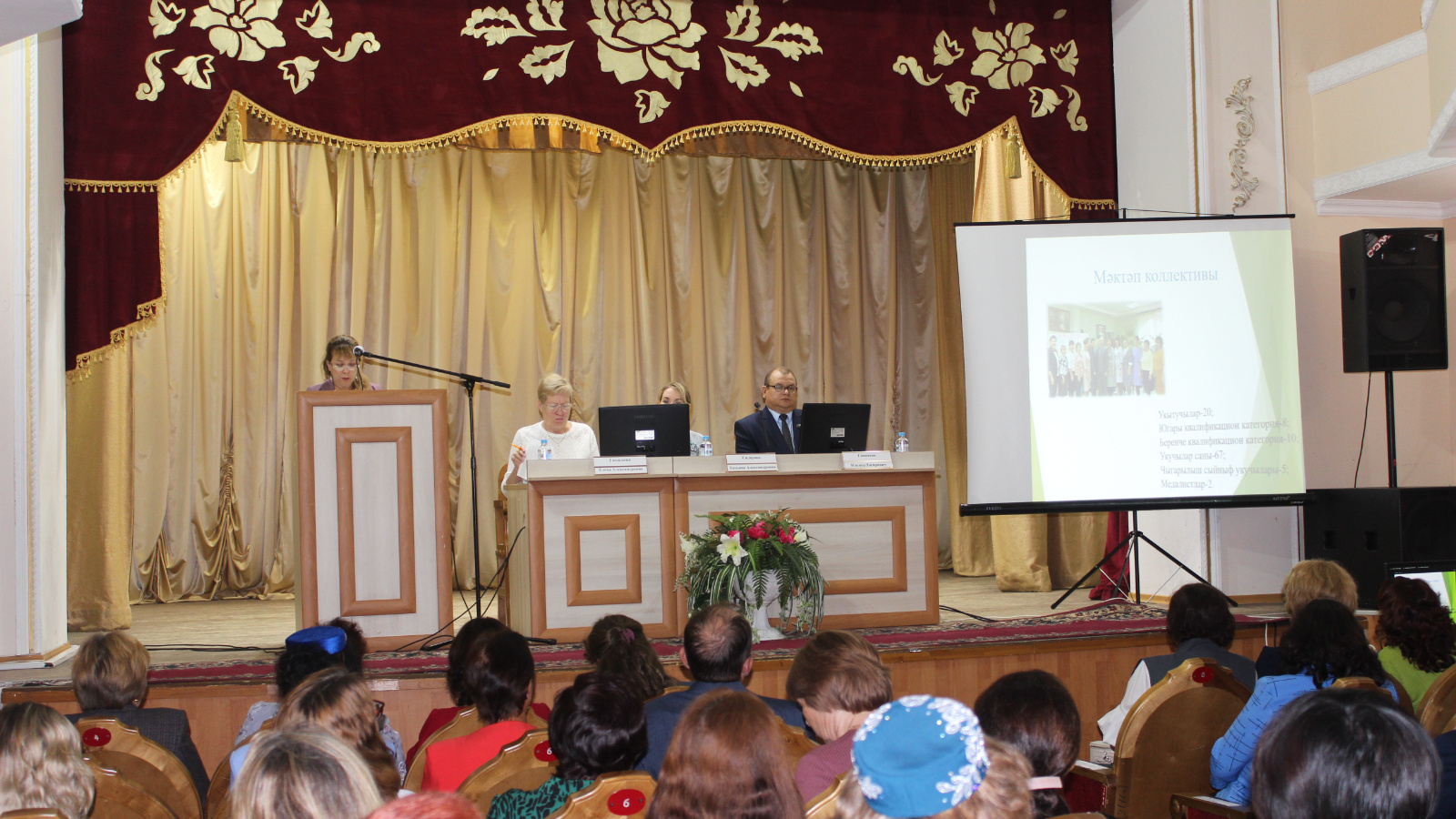 Педагогларга сәламләү сүзләре белән «мәгариф идарәсе» МКУ начальнигы Гимадеева Елена Александровна мөрәҗәгать итте, ул педагогларны уку елы башлану белән котлады. Аннары узган ел нәтиҗәләре турында хисап доклады белән чыгышын дәвам итте.