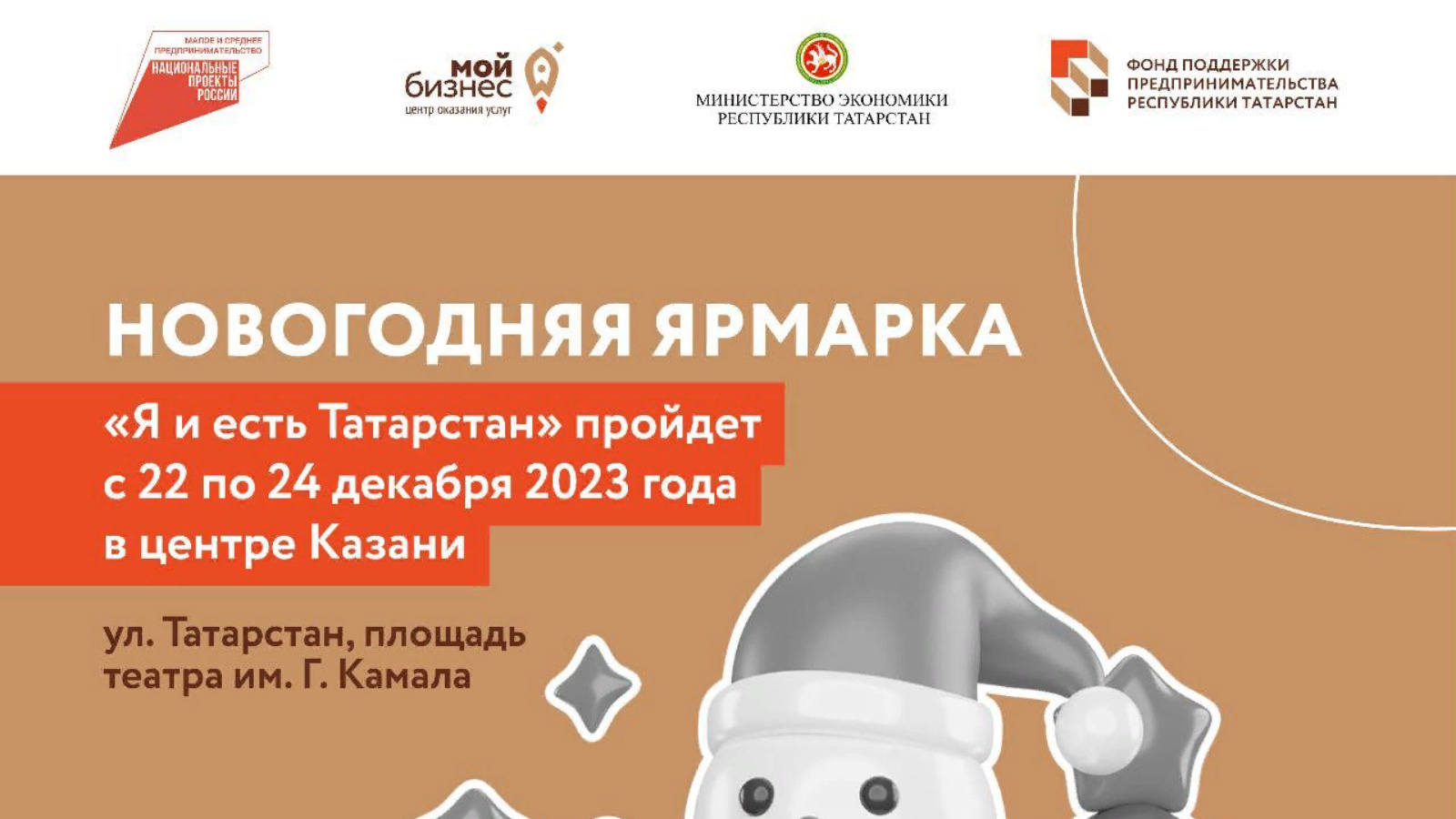 ТР Икътисад министрлыгы ярдәме белән «минем бизнес» үзәге бөтен республикадан үзмәшгульләргә Казан үзәгендә 200дән артык бушлай сәүдә урыны бирәчәк. «Кече һәм урта эшкуарлык» илкүләм проекты буенча «Мин-Татарстан» һөнәрчелек продукциясенең яңа ел ярминкәсе 22-24 декабрьдә узачак.