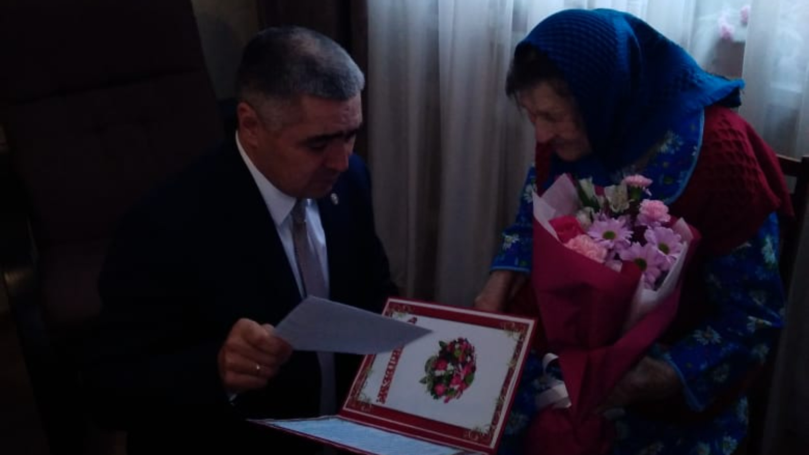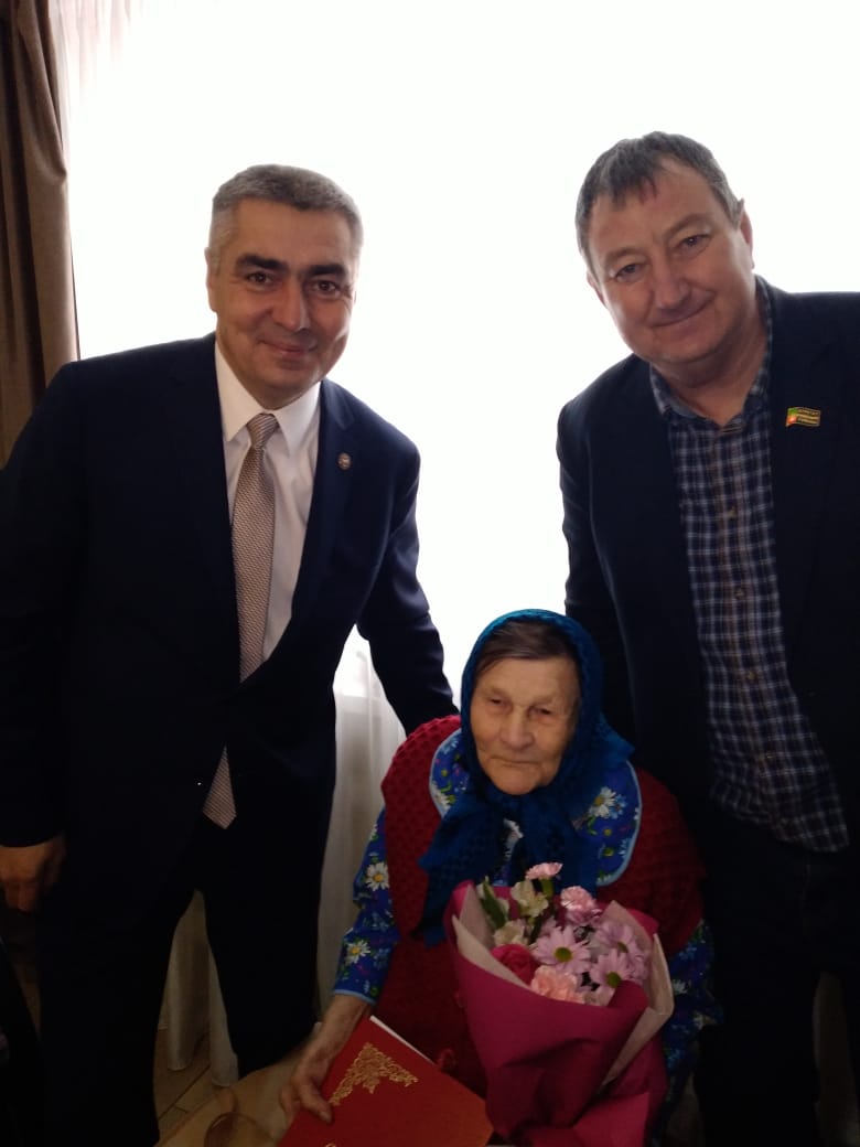 Панова Лидия Николаевнаны юбилее белән Кама Тамагы районы башлыгы Наил Альбертович Вазыхов һәм Теньковский авыл җирлеге башлыгы Зиновьев Игорь Альбертович котладылар.
