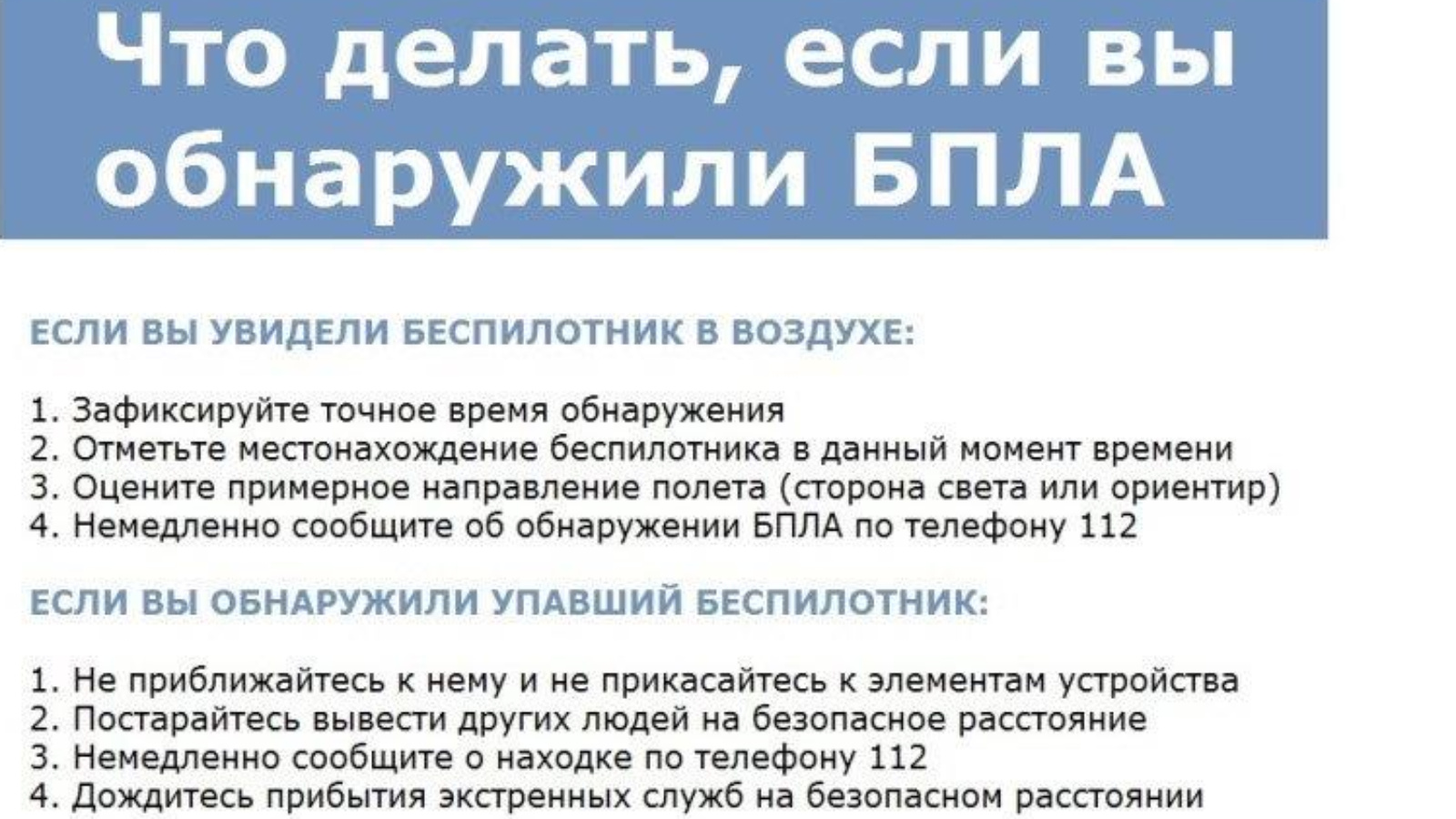 «Отбой атаки БПЛА» сигналын алганчы яшеренү урыннарыннан чыкмаска һәм аларны ташлап китмәскә.
