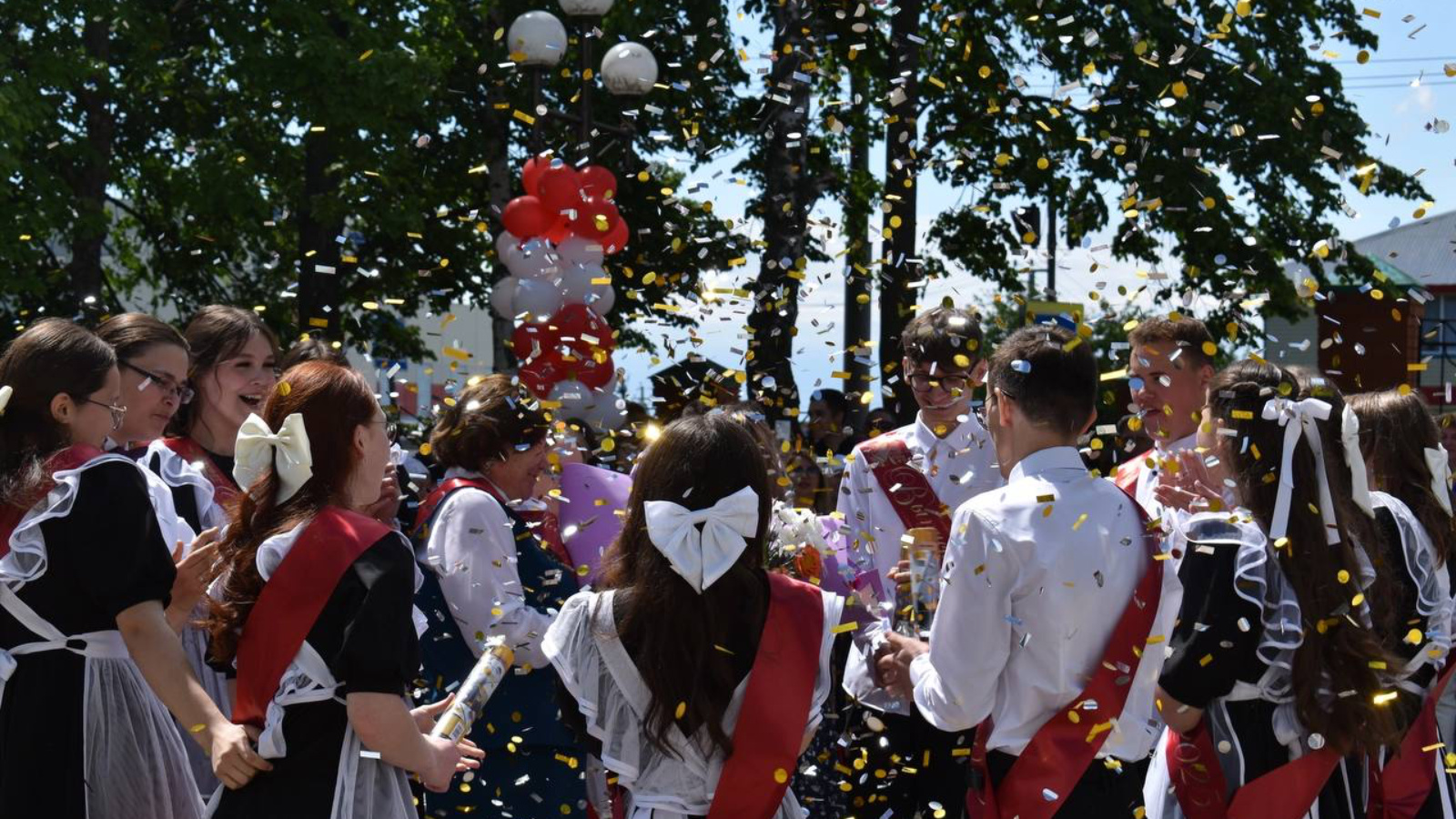 Чыгарылыш укучылары традицион мәктәп вальсын башкардылар, конфетти шартлаттылар. Аның кульминациясе күптән көтелгән соңгы кыңгырау булды, ул чыгарылыш сыйныф укучылары кулыннан яңгырады.