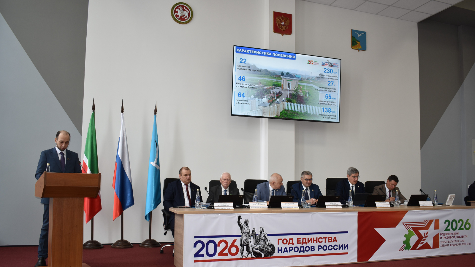 Расланган көн тәртибе буенча беренче булып Кама Тамагы муниципаль районы башлыгы Вазыхов Наил Альберт улы чыгыш ясады һәм 2025 елда Кама Тамагы районының социаль-икътисади үсеше нәтиҗәләре һәм 2026 елга бурычлар турында сөйләде.