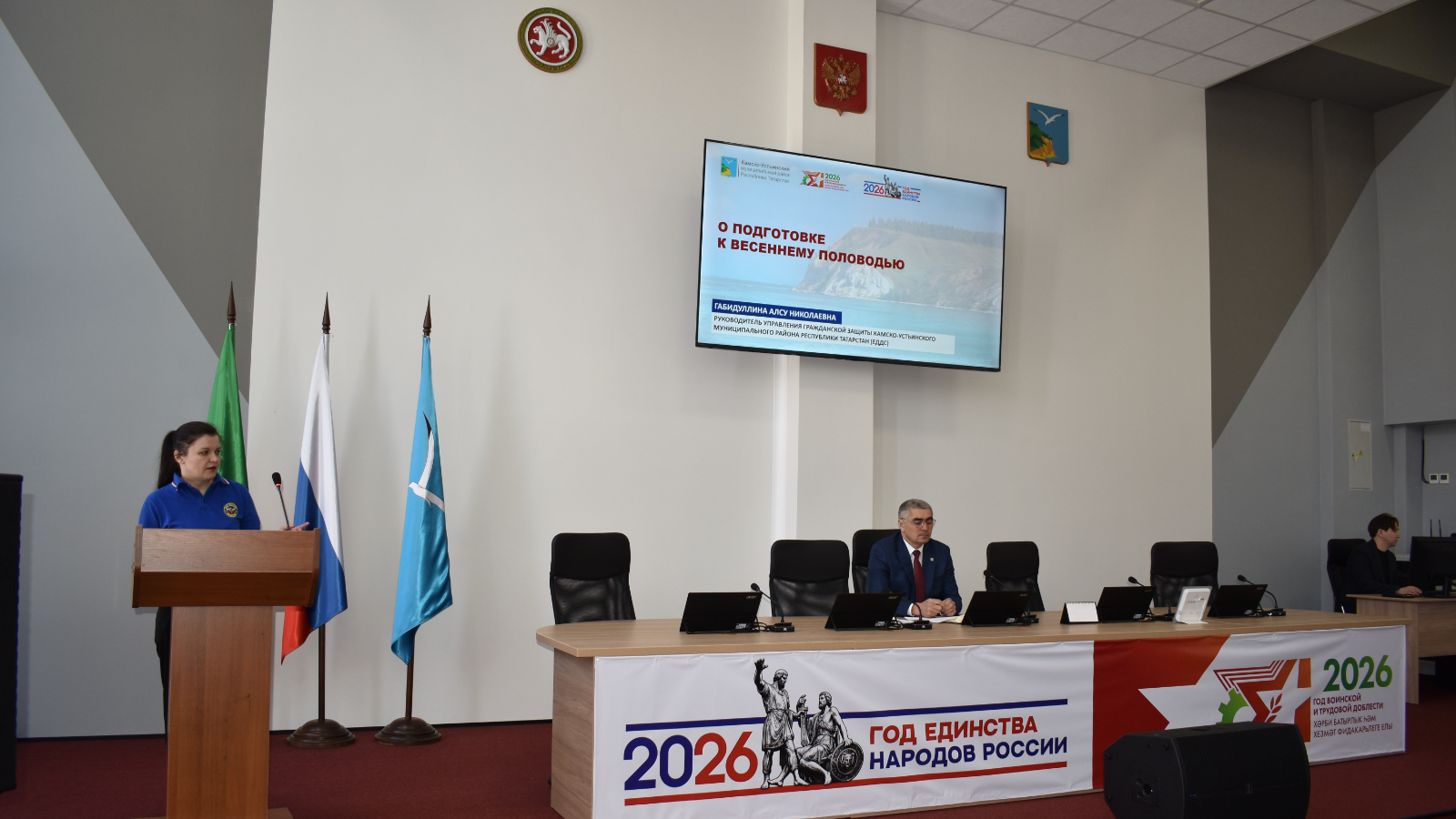 Көн тәртибенең икенче пункты-Татарстан Республикасы Кама Тамагы муниципаль районының Гражданнарны яклау идарәсе җитәкчесе Габидуллина Алсу Николаевнаның язгы ташуга әзерлек турында доклады. Чыгышта язгы ташу вакытында район халкының һәм территориясенең иминлеген тәэмин итү буенча чаралар планы җентекләп бәян ителде. Вәзгыятьне, гидротехник корылмаларның торышын, авария-коткару хезмәтләре көчләренең һәм чараларының әзерлеген мониторинглау мәсьәләләре аерым яктыртылды.